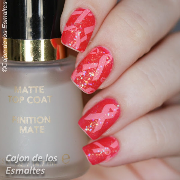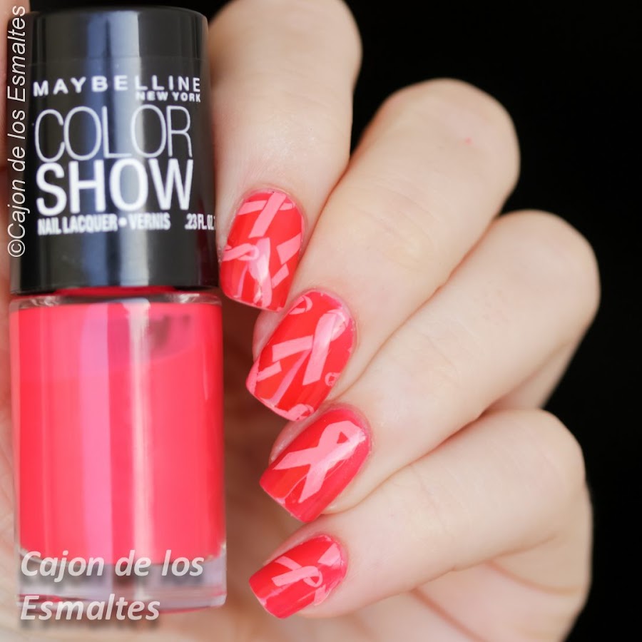 Sobre el color de base elegí un Colorshow que tenía sin estrenar, Pink Shock, porque bueno, pensé que era rosado siendo que el nombre era Pink...yo lo veo más bien rojo cereza así que también fue un Shock :) El esmalte es un jelly con acabado satinado, necesita tres capas para cubrir el borde de la uña, a su favor cubre muy parejo y sin estrías. Me gustaría probarlo con un blanco de base para ver si no es un neón disfrazado. Por lo pronto lo pueden ver abajo con y sin brillo (topcoat).