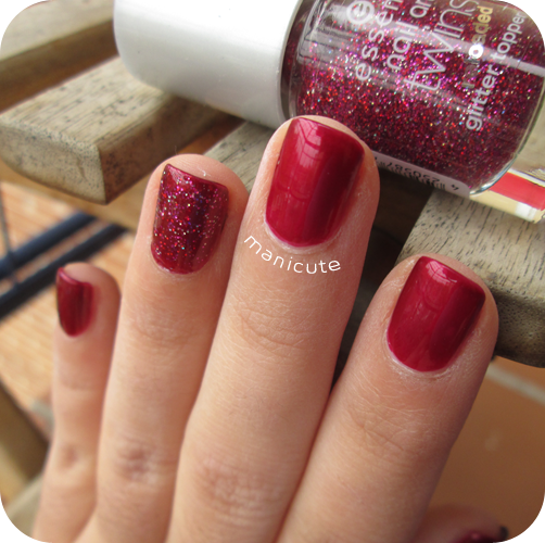 Como el color era tan precioso, no quise poner nada por encima. Sólo un toquecito del glitter #03, Mr.Big, de essence (no sé si será un guiño al Mr. Big de Sexo en NY). Es un glitter mayoritariamente rosa, pero si os fijáis en la foto, también tiene partículas de azul, verde y amarillo, aunque predominen los rosas, como os comento.