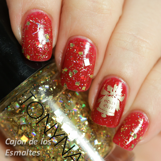 Entrando en los descuentos para la navidad les traigo una manicura con los colores tradicionales de la época, rojo y dorado. Y prometo que es la última, la vorágine de la época ya me arrastra y estoy guardando las placas de estampar hasta el año que viene. ¡Muchas fotos y pocas palabras!