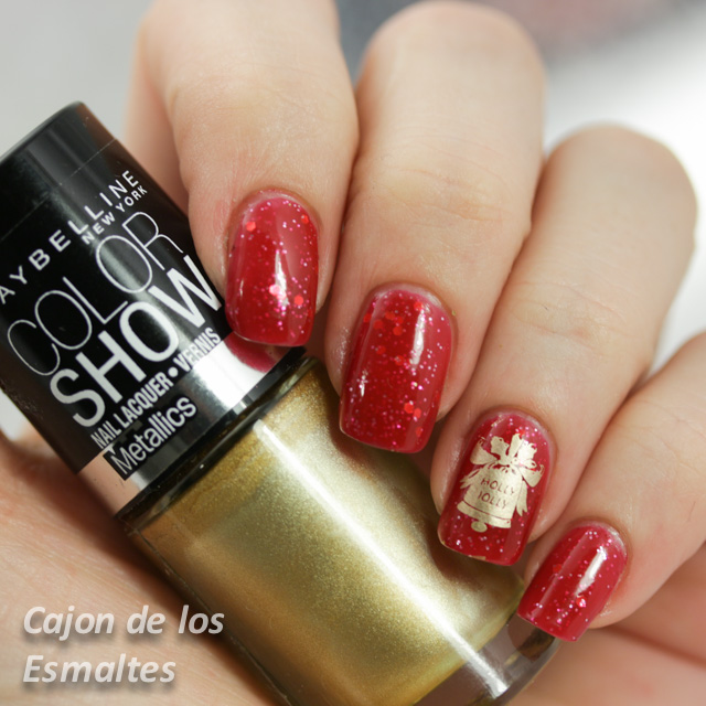 Entrando en los descuentos para la navidad les traigo una manicura con los colores tradicionales de la época, rojo y dorado. Y prometo que es la última, la vorágine de la época ya me arrastra y estoy guardando las placas de estampar hasta el año que viene. ¡Muchas fotos y pocas palabras!
