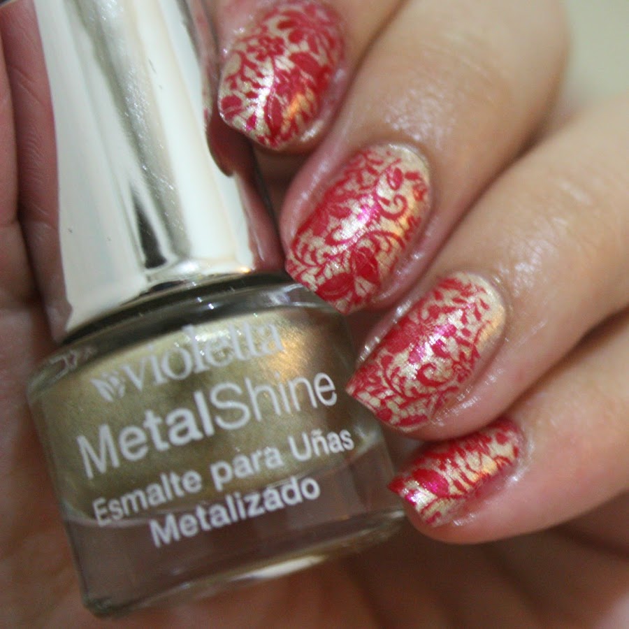 De base use este dorado de la marca Violetta de la linea Metal Shine. (esmalte que llegó a mi gracias al swap que hice con Julia, de Loca X los esmaltes que pueden ver ACÁ)