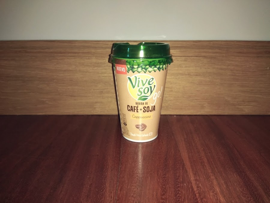 ViveSoy Go Café y Soja tu bebida de soja 100% vegetal combinada con café y un ligero toque de cacao. Lo podrás tomar en casa o dónde quieras, fría o caliente, como prefieras. Además, es una bebida enriquecida con calcio y vitamina D, que te ayudará a seguir con tus hábitos de vida saludable. 1,25€