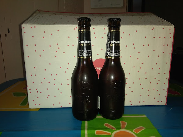 CRUZCAMPO GRAN RESERVA. Cerveza especial, con un contenido alcohólico de 6,4 % en volumen. Color ámbar brillante, espuma compacta y cremosa, aroma intenso y agradable que le aporta el tueste de la malta. Con cuerpo y amargo moderado, es una cerveza de una calidad excepcional para su disfrute. Precio 0,84€ x 2 = 1,68€.