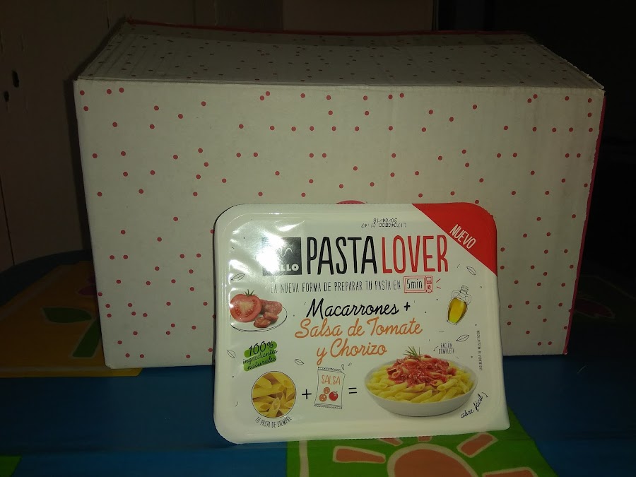 PASTALOVER GALLO Macarrones con Tomate y Chorizo. 100% sémola de trigo duro, con paredes más finas y un secado especial, que aseguran su cocción. Añade agua, ponlo 5 minutos en el microondas, escurre, agrega la salsa y listo. Tu ración completa y recién hecha. Precio 2,25€.
