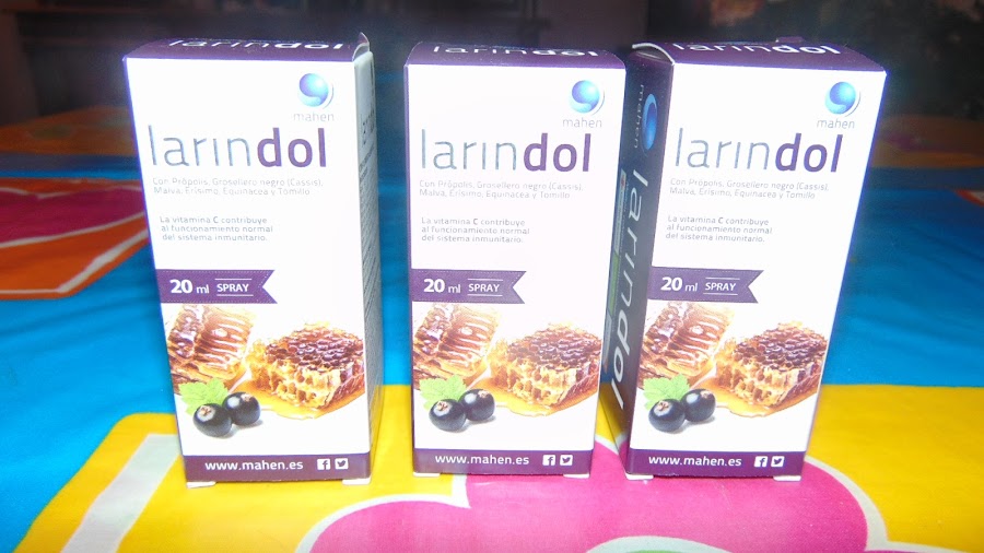 Mahen Larindol: Suaviza la garganta irritada por el frío y la tos. La viscosidad de la miel proporciona una barrera protectora que previene la infección de la mucosa y la vitamina C ayuda al crecimiento y preparación de los tejidos dañados. Modo de empleo: Pulverizar 3 veces a dia en la cavidad bucal dos pulverizaciones por cada toma, un total de 6 pulverizaciones al día. Ingredientes: Miel, Concentrado de Cassis, Extracto Hidroglicerinado de Própolis, Vitamina C, Extracto seco de Própolis, Extracto seco de Malva, Extracto seco de Erísimo, Extracto seco de Tomillo, Extracto seco de Echinácea. Precio 12,50.