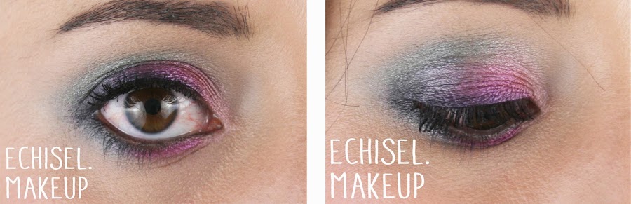 Bueno hoy os traigo una pruebecilla que estuve haciendo con dos sombras de Pierre René. Una de ellas en tono rosado con un punto fucsia y la otra verde, parecida a la Humid de Mac.