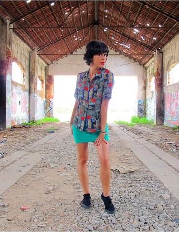 Camisa de Picos Pardos Vintage, ya sabéis lo que me gusta esta tienda online y ahora más que nunca sus camisas se ponen de moda. Alegres, divertidas y muy modernas, se hacen imprescindibles para el veranito y los festivales. Opté por ésta de medallas y escudos por sus colores y por romper con el verde de la falda.