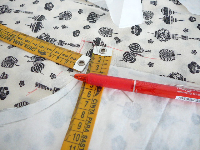 ya que si hacemos las marcas con este es mucho más escurridizo y corremos el riesgo de que se nos .suelten los hilos antes de que nos de tiempo a hilvanar