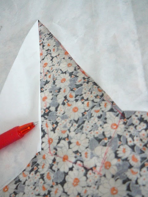 Lo primero que tenemos que hacer es marcar en la tela la línea de patrón que queremos transferir a la tela , en este caso el contorno de las pinzas para que nos queden iguales en las dos telas