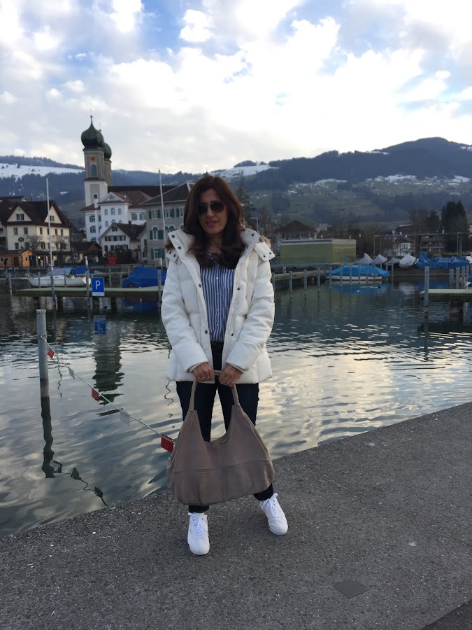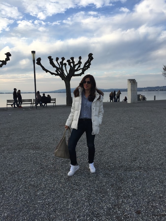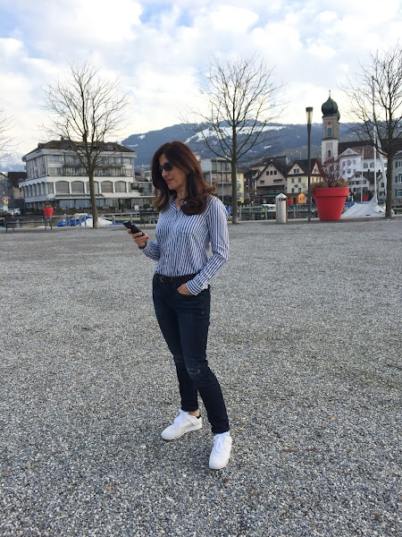 Bueno, que me enrollo como siempre, el look de hoy es de lo más urbanita y atemporal, camisa de rayas verticales (azul), tejano roto, pero poco, parka y zapatillas blancas y bolso grande de los que a mí me gustan.