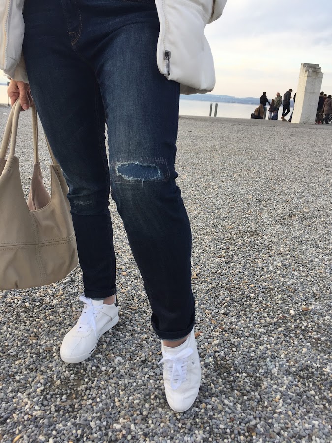 Las chicas jovencitas aquí en Suiza los llevan rasgados, de los que se ve media pierna y los lucen con media de rejilla debajo. Para una chica de 20 me encanta. Probablemente si tú te ves bien, seguro que te verán bien, pero yo hago mi adaptación del vaquero roto. La que le va a mí forma de ser.