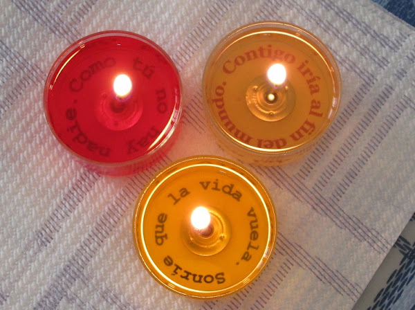 Yo tengo tres velitas, con un mensaje oculto, jejeje. Bueno, más bien, el mensaje que aparecerá ya lo sé, porque las he personalizado, jijiji. Después de encenderlas, a los 60 minutos, las miré, y ¡efectivamente!, el texto ya aparecía.