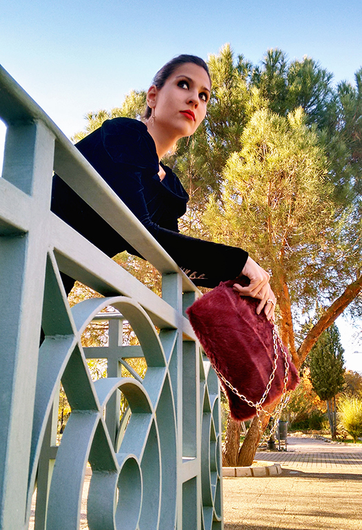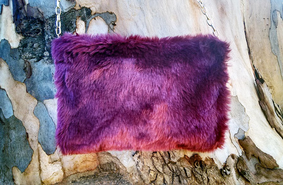 Y para rematar el look, he elegido un bolso de pelo color vino tinto con una cadena dorada. Es como un peluche!!