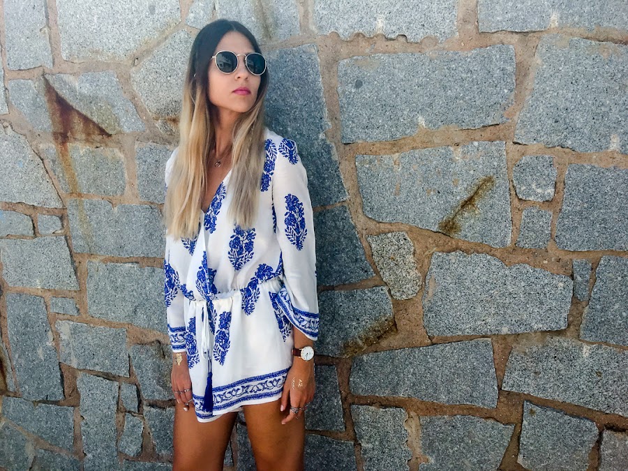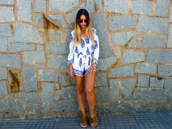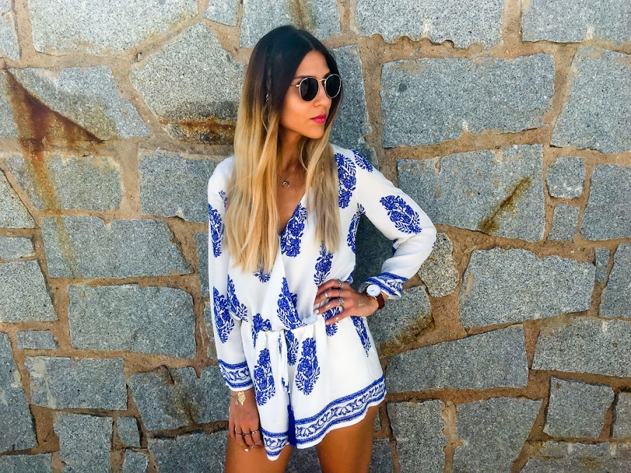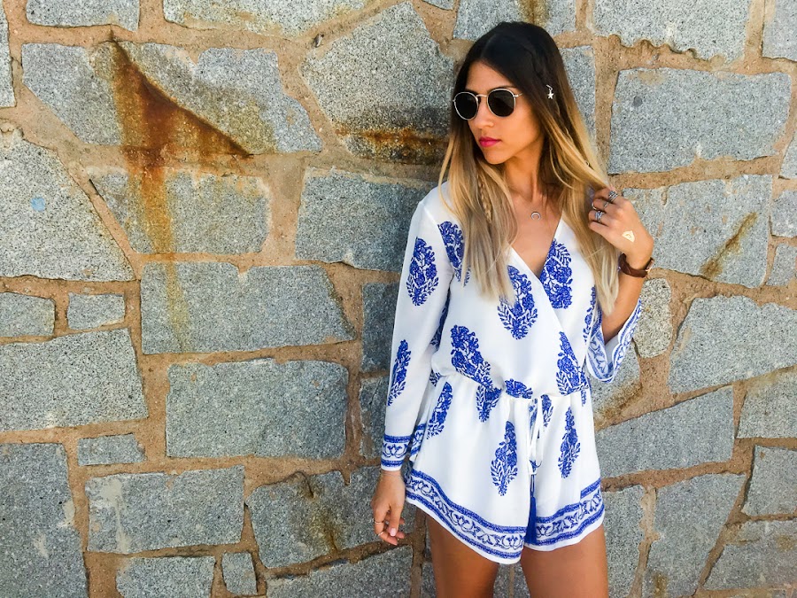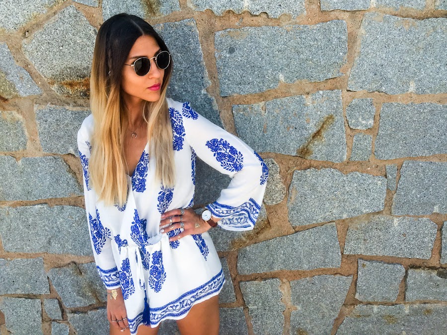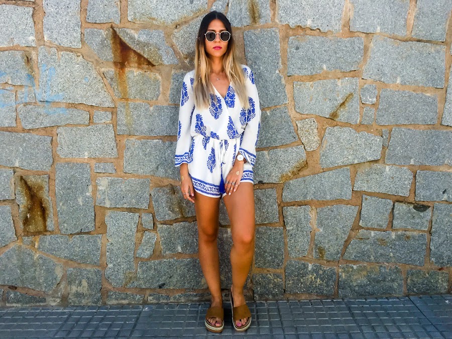 Y vamos a hablar del look de hoy. Os confieso que uno de los estilos que más me gusta para el verano es el estilo boho. Y así es el estilo que he elegido para hoy lunes, para que se nos haga menos pesado. Un mono cortito blanco con estampado de plumas y con goma ajustable en la cintura. La tela es súper fresquita para el verano y es súper cómodo! Es de LOOKBOOK STORE y creo que se ha convertido en la prenda estrella de mi armario.
