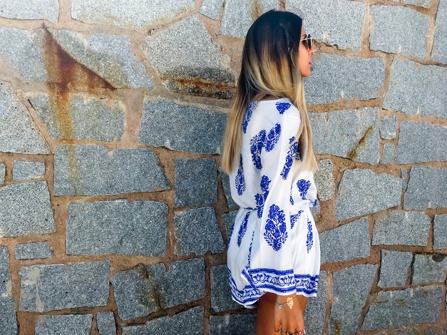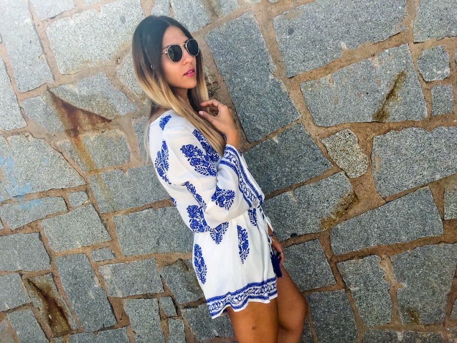 And lets talk about todays look. I confess that one of the styles that I like for the summer is the boho style. And so it is the style that I have chosen for Monday, so that we become less heavy. A white romper with feather print and adjustable rubber band at the waist. The fabric is super cool for summer and super comfortable! Its from LOOKBOOK STORE and I think it has become the star of my wardrobe.