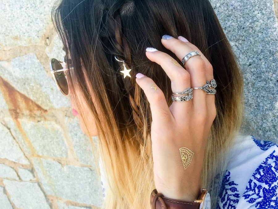 As accessories, I have chosen some rings and accessories for the hair to finish giving that bohemian touch. The rings are from ZAFUL and if I tell you what they cost me, do not believe it, only 0.01 because it was the ZAFUL birthday and I caught it super discount! Hair accessories are from DRESSLILY and I love the touch they give to braids.