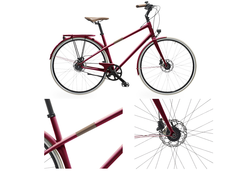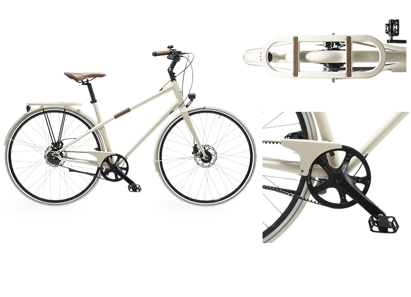 Nos ofrece esta bicicleta de paseo mixta polivalente en carbono, extremadamente ligera con tres acabados negro, blanco y rojo y en tres tamaños S, M y L, forro de becerro natural en los puntos de contacto, manillas y sillín y cambio de 8 velocidades, el único inconveniente es el precio 8.900€. Ya hemos visto estas piezas vestidas y diseñadas anteriormente por Hermes y por otros muchos diseñadores como Armani, Gucci o Paul Smith como podéis ver aquí.
