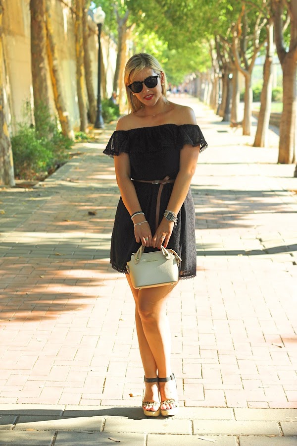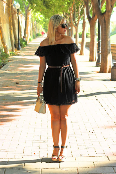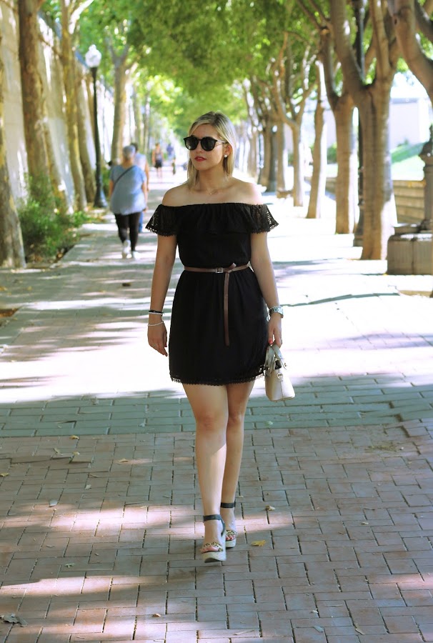 What heat is doing these days! The best outfit to withstand this high temperatures is a fresh dress as the one I show you in the outfit of the day. This off-shoulder black dress is the perfect wildcard in any closet for the days you dont know what to wear. In addition, changing the accessories you can create different ouftits that it seems that youre wearing a new dress every time. In the outfit of the day, I wear it with animal print sandals and my new mini golden bag that I bought in my last trip to Polonia.