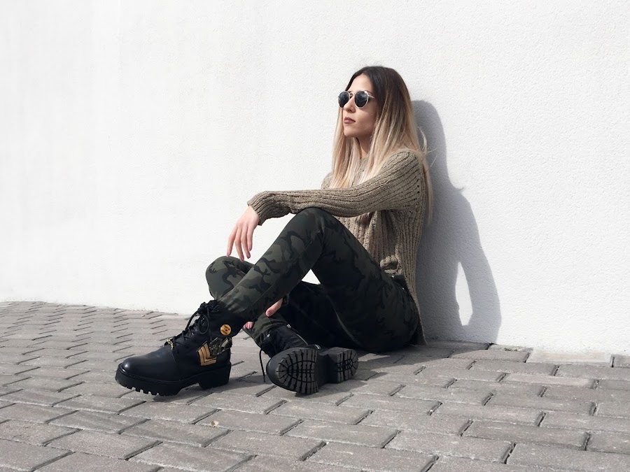 For my feet, I repeat with my military boots of Zara, which you have already seen a million times, but I never tire of teaching them !!