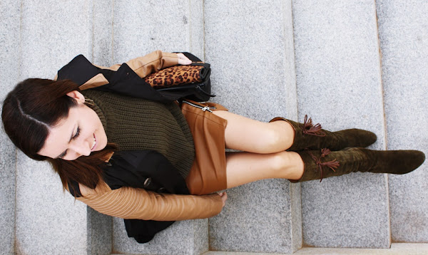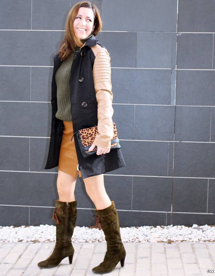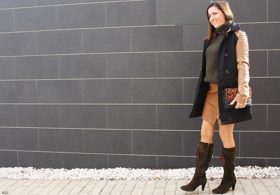 Esta ya es una de mis favoritas, mezclando tres tonos, camel, negro y verde intenso.