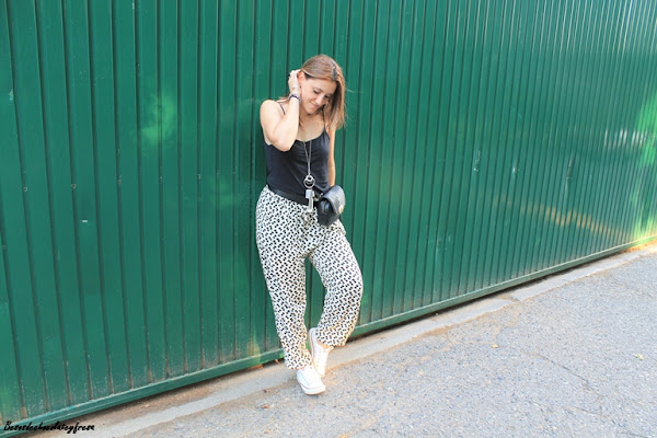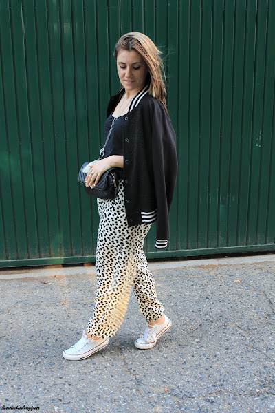 Para el look de hoy, un look en blanco y negro, aposté por un look comodo con pantalones flojos con puño en el bajo con camiseta básica en negro, chaqueta bomber también en negro para darle un rollo más casual al look, sneakers y bolso a modo de riñonera.