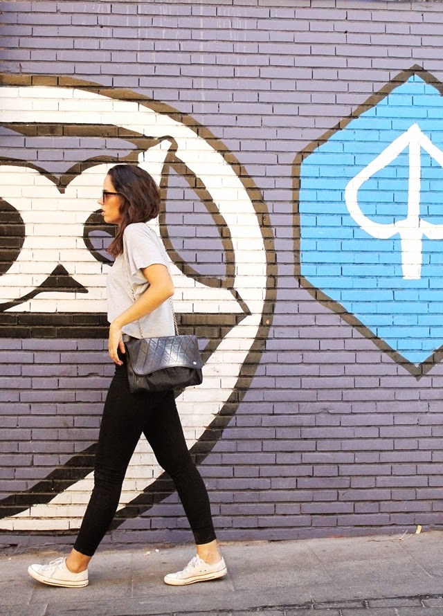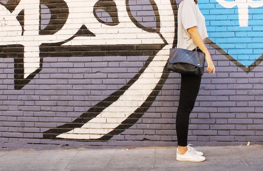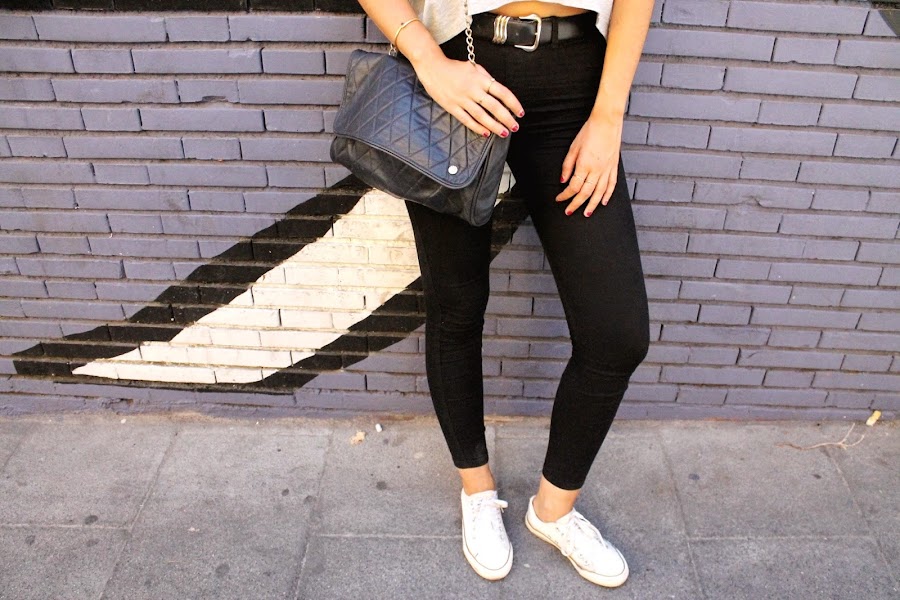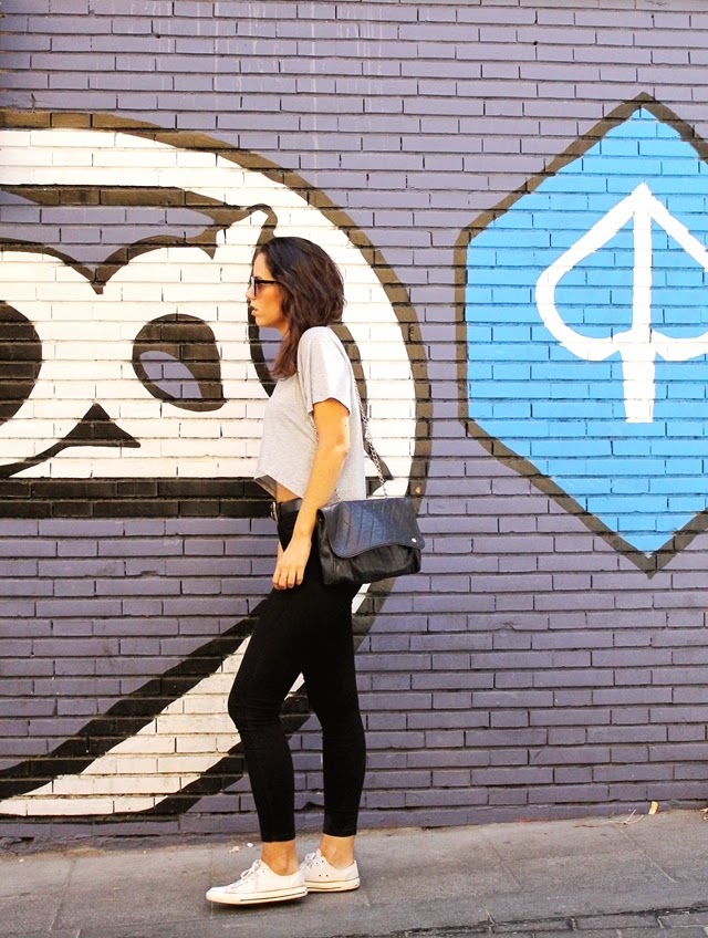 Barcelona camiseta/ shirt: Zara falda/ skirt: Dorado Vintage joyas/ jewels: María Pascual bolso/ bag: Dorado Vintage sneakers: Converse
