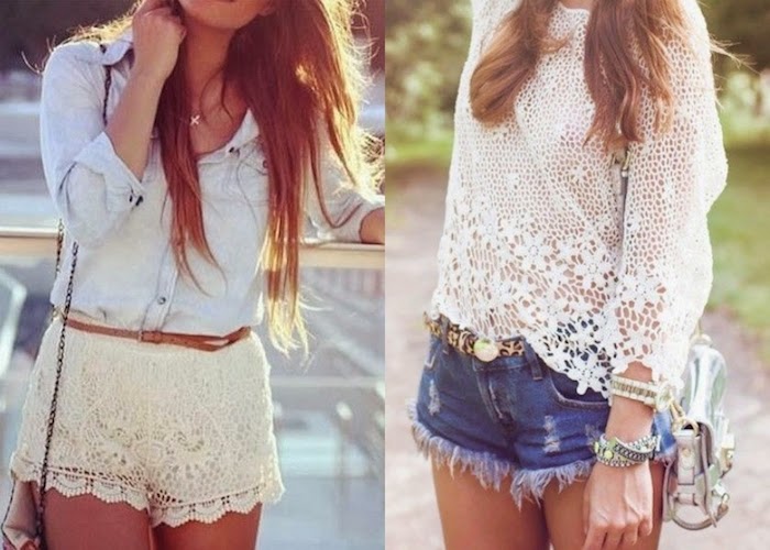This fabric is very associated with festival outfits, although we can find lots of lovely dresses that we can wear in a more formal event. Personally, my favorite combo for summertime is a top in crochet with denim shorts, either with wedge shoes or flat sandals, both options must be a confortable outfit. The key is always to play with accessories such as hats or jewelry, by this way we can get a bohemian or gipsy look which is so fashionable in summer.