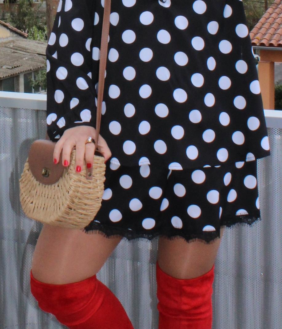 El resto de look botas overknee y uno de los bolsos que no te puedes perder de cara a la época estival, que aunque el año pasado ya tuvieron un gran protagonismo, sin duda este será su año. Un bolso de mimbre rígido, tipo caja, existen muchas variedades en el mercado, desde tipo cofre, tipo cesto de ir a recoger setas, redondos….. elige el que más te guste, pero desde luego no te quedes sin el must de la temporada.