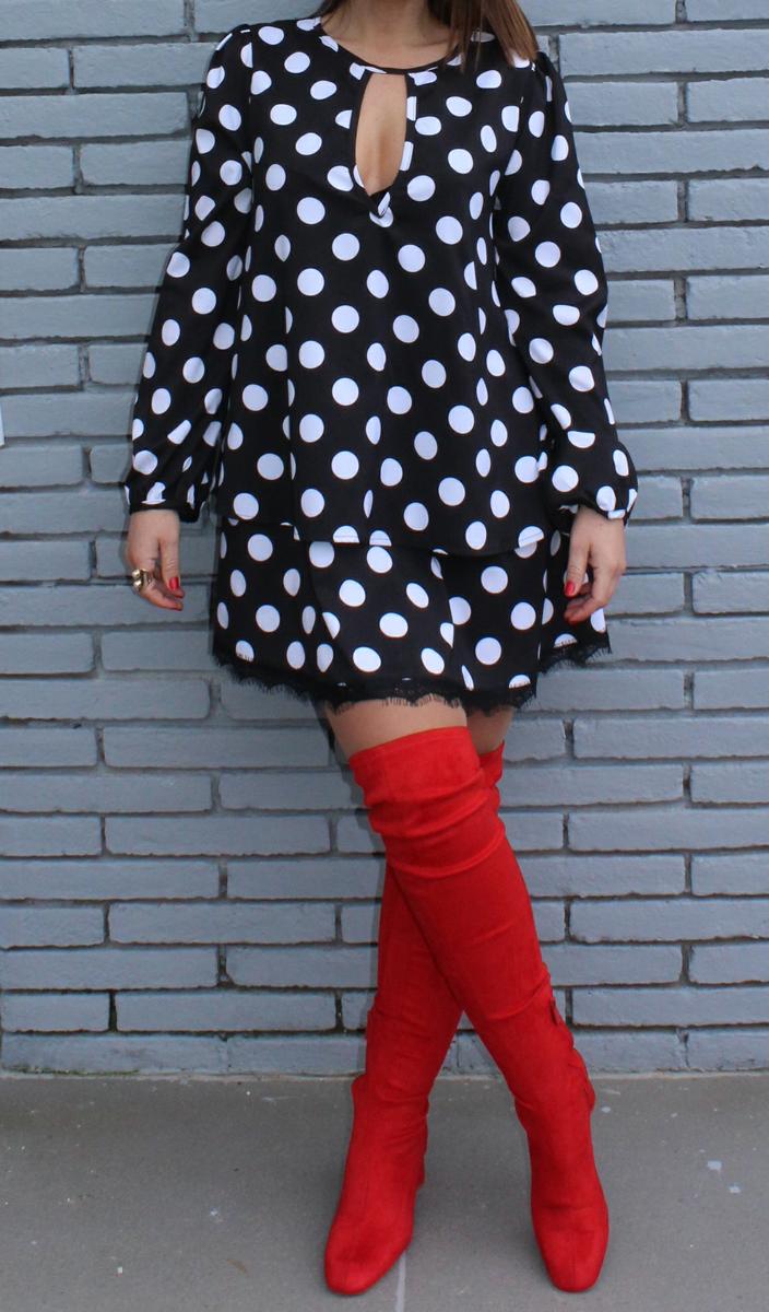 Y como las ganas son muchas de olvidarnos de abrigos, bufandas y demás prendas de abrigo, aproveché la ocasión para estrenar mi vestidito de lunares, que no sé si es porque me recuerda a las ferias del sur y esto lo relaciono con el buen tiempo, pero este tipo de estampado siempre me sube el animo.