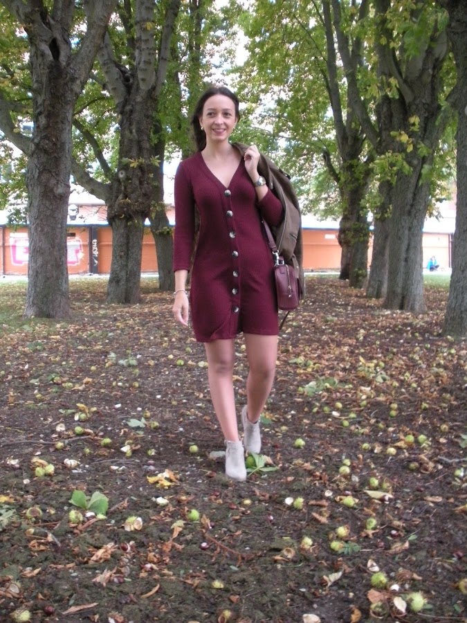 Vestido de nueva temporada de Stradivarius, biker de Zaful, botines de Bershka y bolso de Primark de otras temporadas.