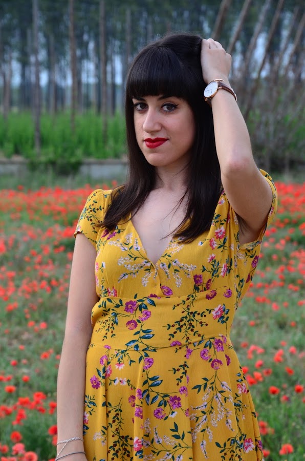 Hoy toca outfit de verano, ayer hizo un día maravilloso, con sol y mucho calor (hoy, sin embargo, ha vuelto el mal tiempo...) y de todos los vestidos que tengo por enseñaros elegí este, de color amarillo y con estampado floral de Zaful.