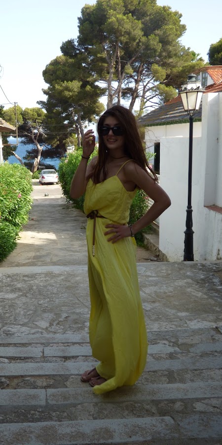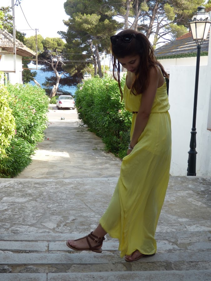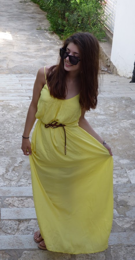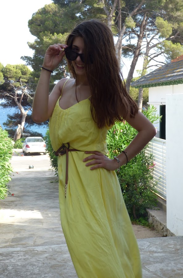 Yellow, yellow, yellow. Yellow was this season"s color, but I didn"t bought anything yellow. Some days ago, when summer sales started, I fell in love with this dress, but there"s something bad with long dresses: I"m so short and I always drag them. The only way to wear them is with hight heels, but lately I am feeling more comfortable with flat shoes, so I had to look for the way to wear it with sandals: just put a belt on it!