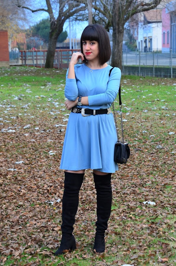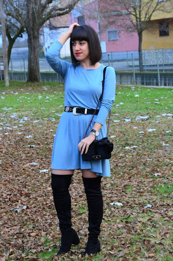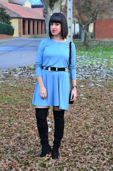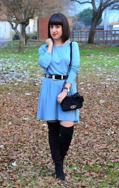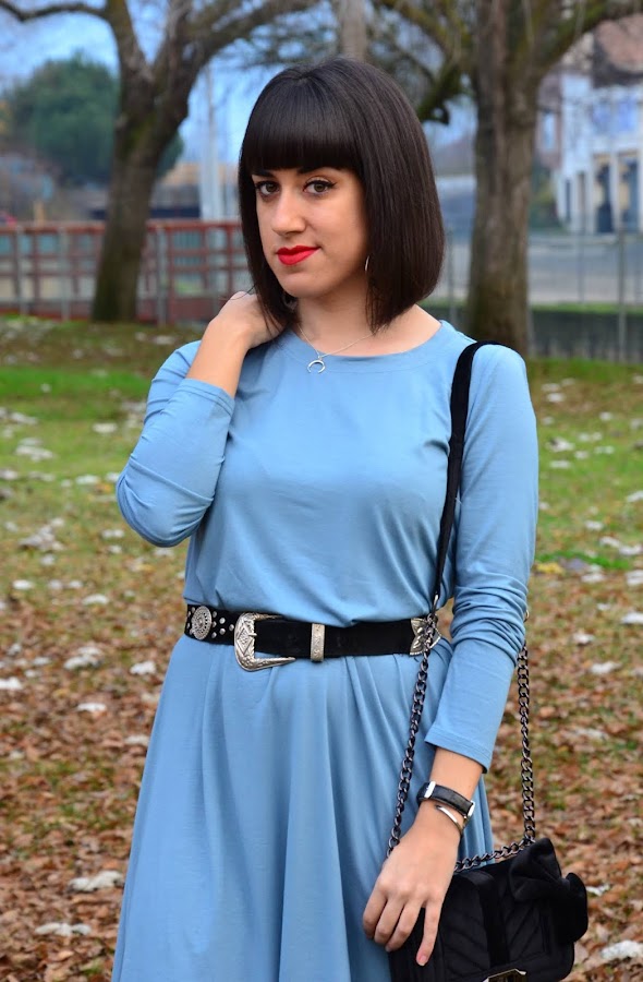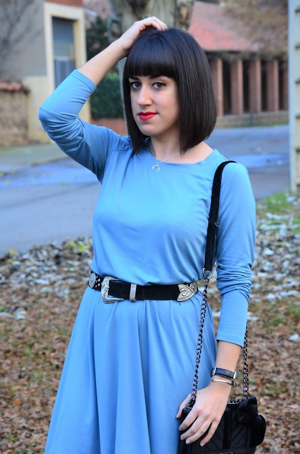 Me quedaba por enseñaros la última prenda de mi pedido a Shein y se trata de este vestido en color azul cielo de estilo camiseta. Aunque no es tela gruesa tiene buena calidad y como para mi gusto es bastante largo para mi, le añadí este cinturón, una pieza vintage que tiene más años que yo jajaja.