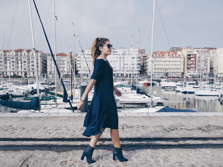 Se que este vestido, con unas deportivas es una combinación genial, pero hoy lo llevo con mis nuevos botines, me encanta en detalle "lace-up" de la parte de atrás, dan muchísimo rollo al look.