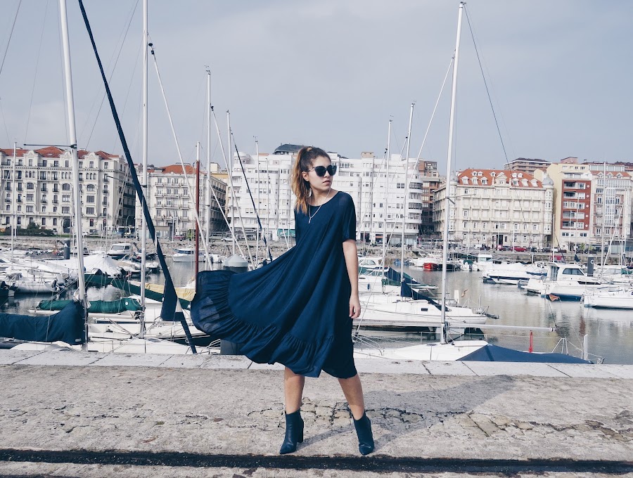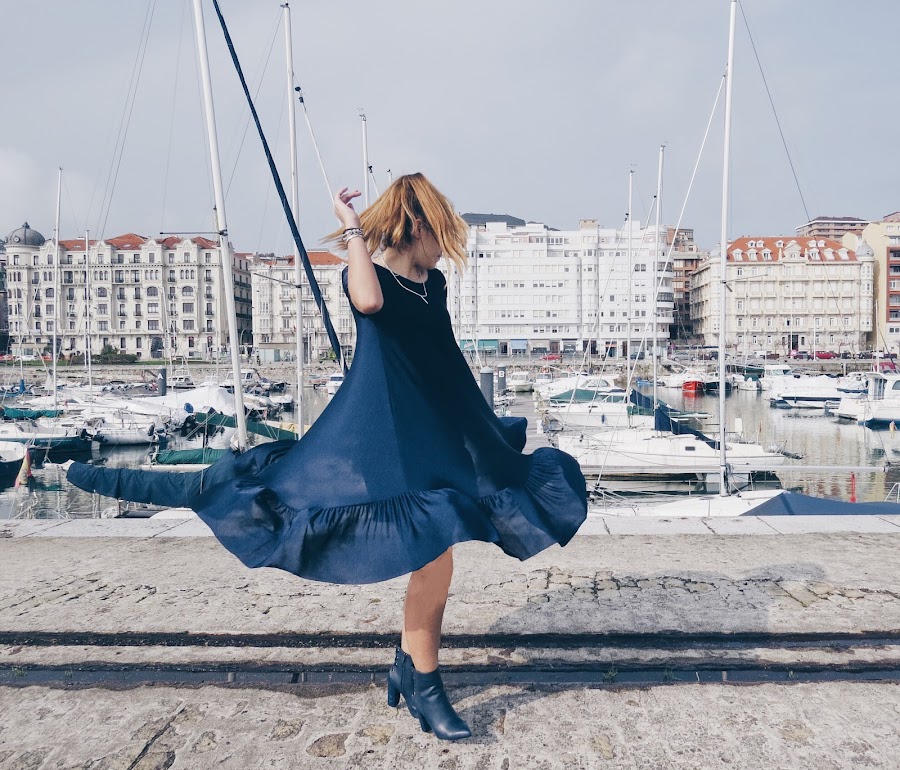 I am very fan of dresses with ruffles in the bass and more if they are midi (although like this one that is basic) it allows me a thousand combinations for looks more comfortable and more sophisticated looks.