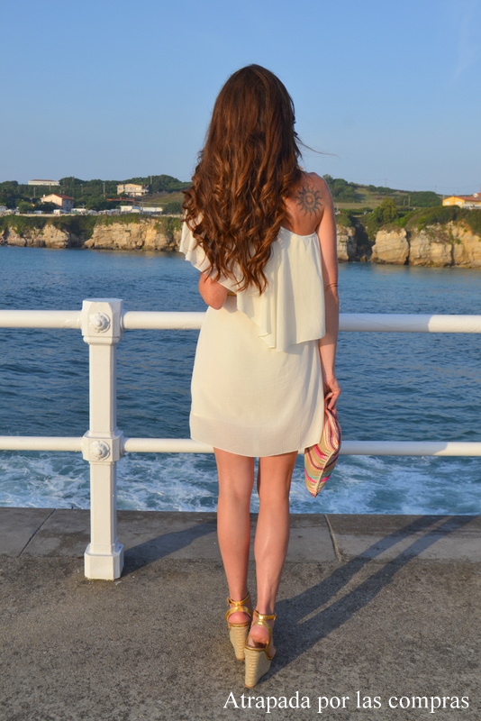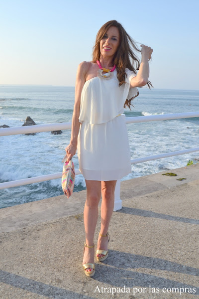 El pasado viernes acudí a la presentación de la nueva colección de la firma de lata bisutería LA NENA y me pareció el evento adecuado para estrenar un vestido blanco, de corte asimétrico y largo por encima de la rodilla de la firma online FEMME LUXE . Lo combiné con unas sandalias de lunares, un bolso negro también de lunares y, por supuesto, una pulsera de LA NENA.