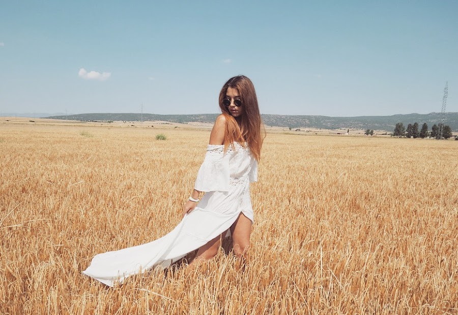 No tengo mucho que decir sobre el outfit porque creo que el vestido habla por sí mismo, Este vestido el largo hasta los pies, con la espalda de corte bajo creo que queda monisimo y es una prenda que suele sentarnos muy bien a todas, junto con mis nuevas gafas de TRICIRCULO salieron unos fotones!.
