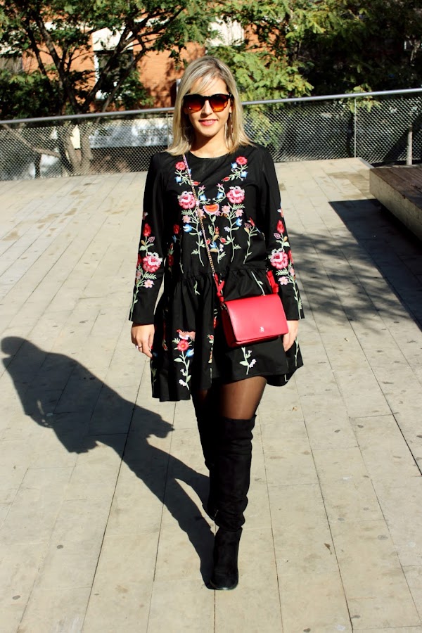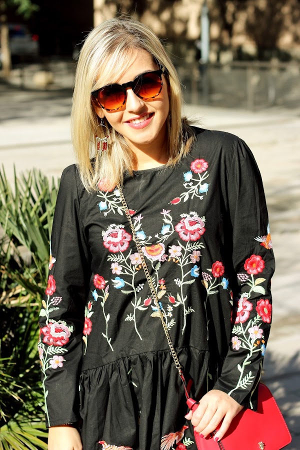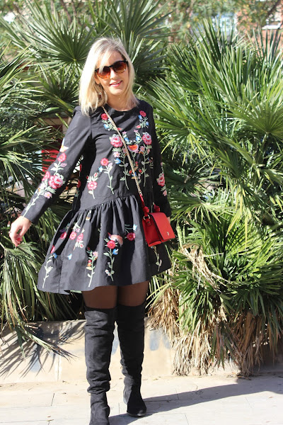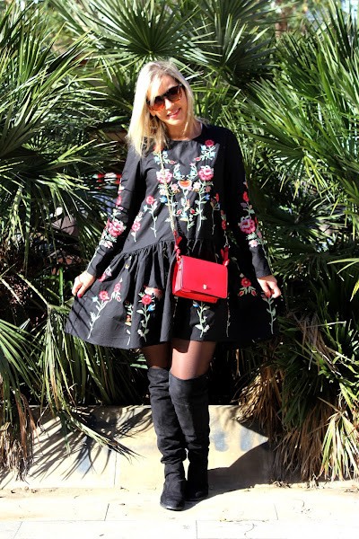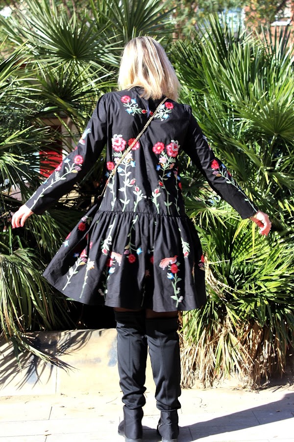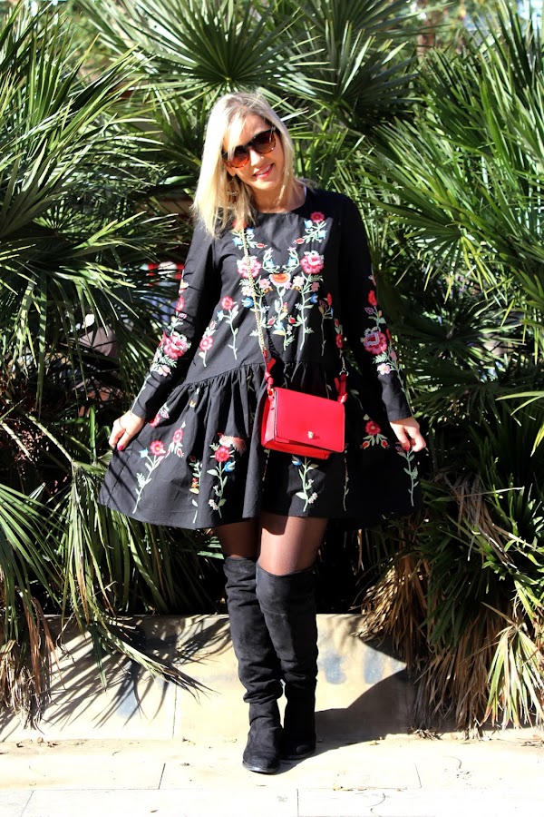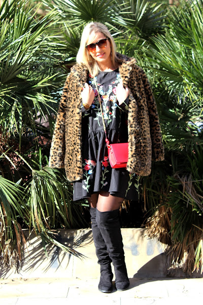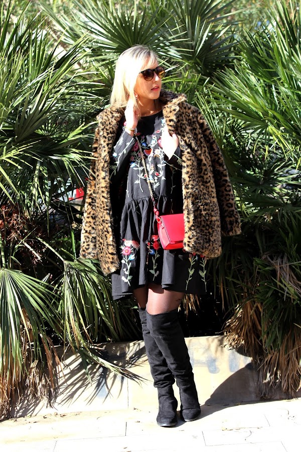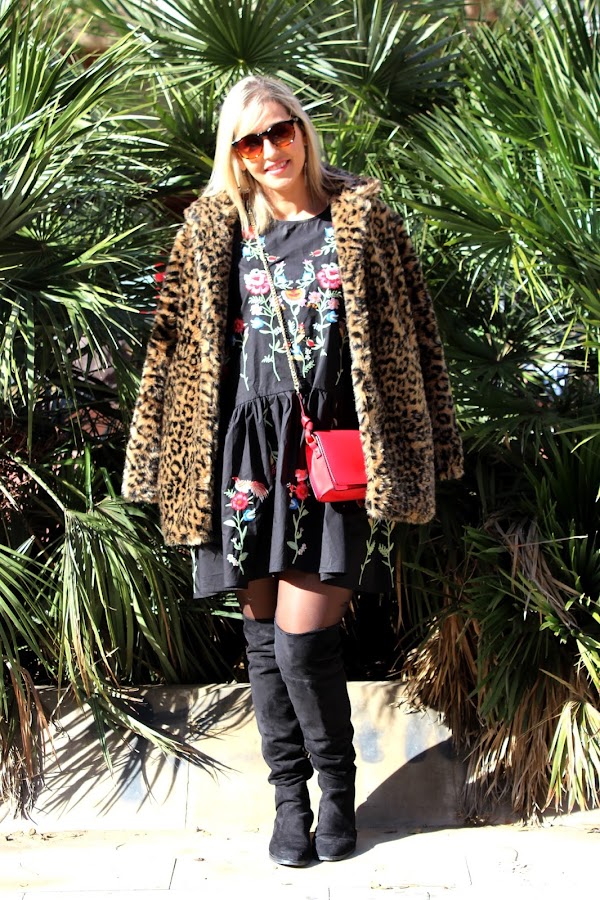 I declared fan of embroidered trend that I told you before in other posts. When I saw this black embroidered dress in Zaful, I fell in love and I bought it. I wear it with a black boots over the Knees , my new animal print coat and my new red bag of Zara that I bought during the Sales.