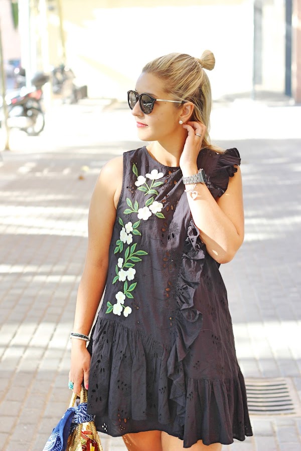 One of my favorite trends of this season are the embroidered. I think that I have a little obsession with them, because when I see an embroidered garment, my eyes go to there. When I saw in the Sales the dress that I show you today, I fall in love with it. This black dress has two of the trends of this season: embroidered and ruffles and I think that its the perfect dress of the season.