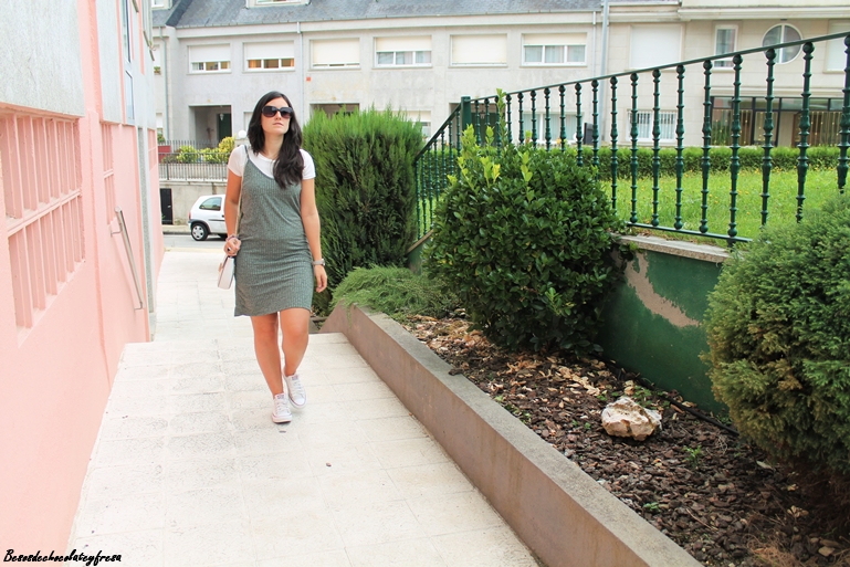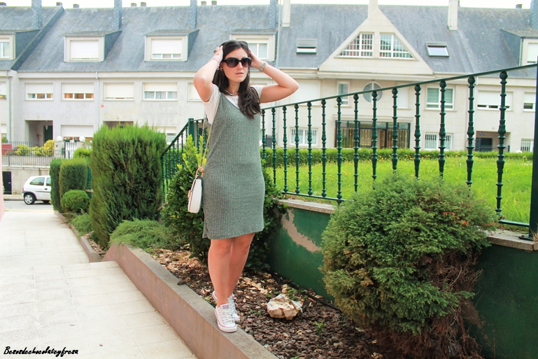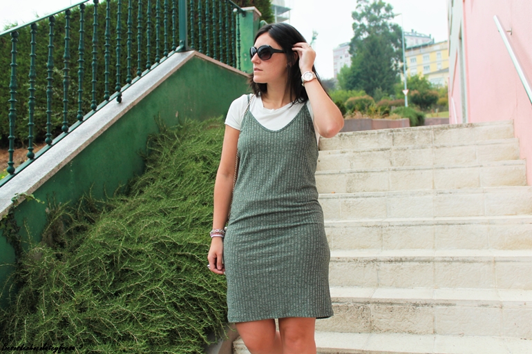 Hoy os muestro un look de entretiempo, pues aún las buenas temperaturas se notan y que duren jejeje. En esta ocasión llevo una prenda muy tendencia este otoño, pues se trata de un vestido de tirantes color kaki con camiseta blanca, de mi tienda online (a veces no me puedo resistir) y separables por lo que si viene un día de mucho calor se puede llevar sin camiseta.