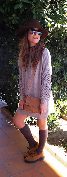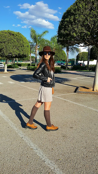 Utilicé unos calcetines por debajo de la rodilla para darle un toque informal, una biker negra, zapatos color camel a conjunto con el bolso y como complementos, un choker negro y sombrero de ante marrón chocolate. Y sí , aunque sea primavera, me encanta llevar sombrero, además de taparme el sol, me parece un complemento ideal para cualquier ocasión.