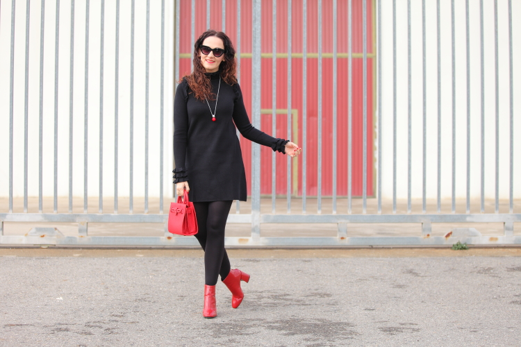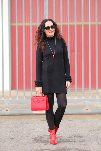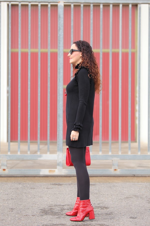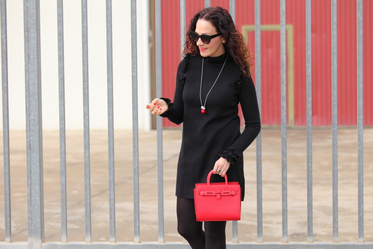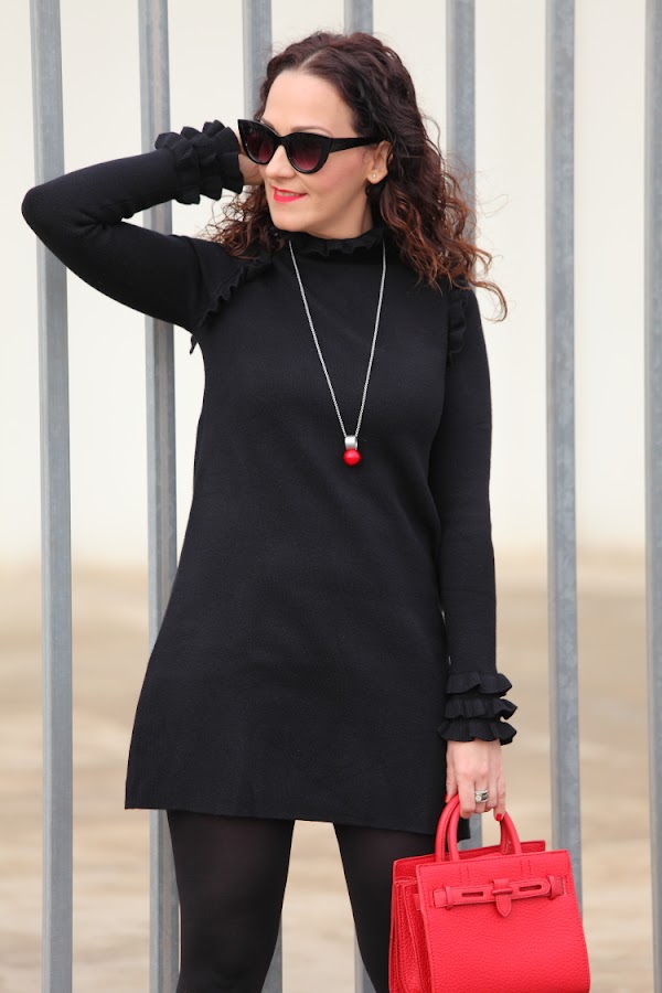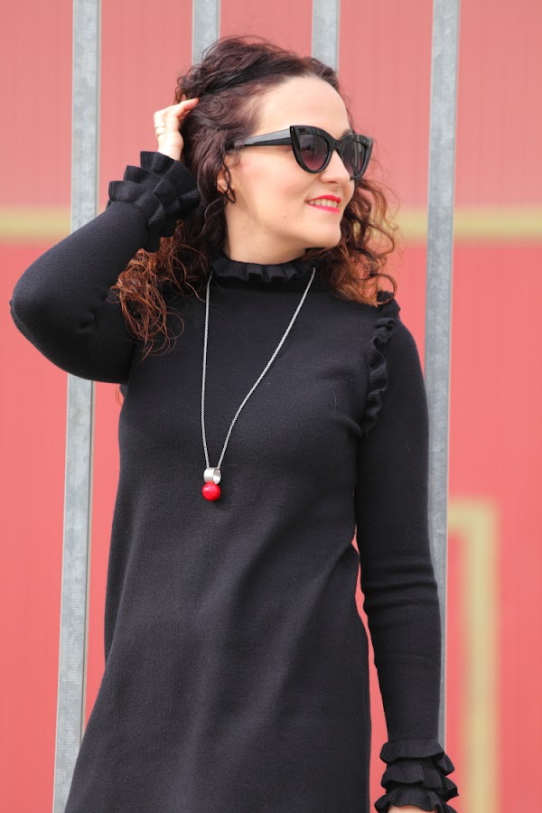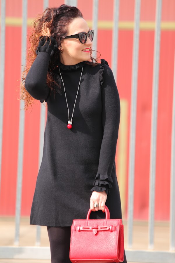Ya sabéis que el negro es mi color favorito, pero después de abusar durante bastante tiempo de él ahora intento evitarlo introduciendo otros colores en mi vestidor. Como habréis comprobado, creo que lo he conseguido por eso de vez en cuando me doy el capricho y creo algún total black. Hoy es uno de esos días, con el frío que hace nada mejor que un vestido de punto calentito al que le he dado vida con los complementos.