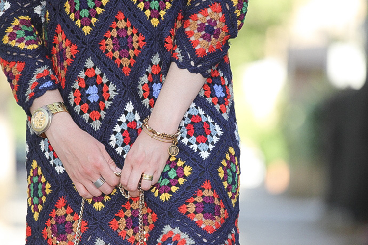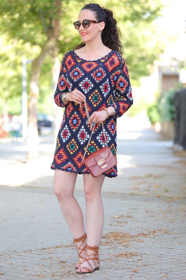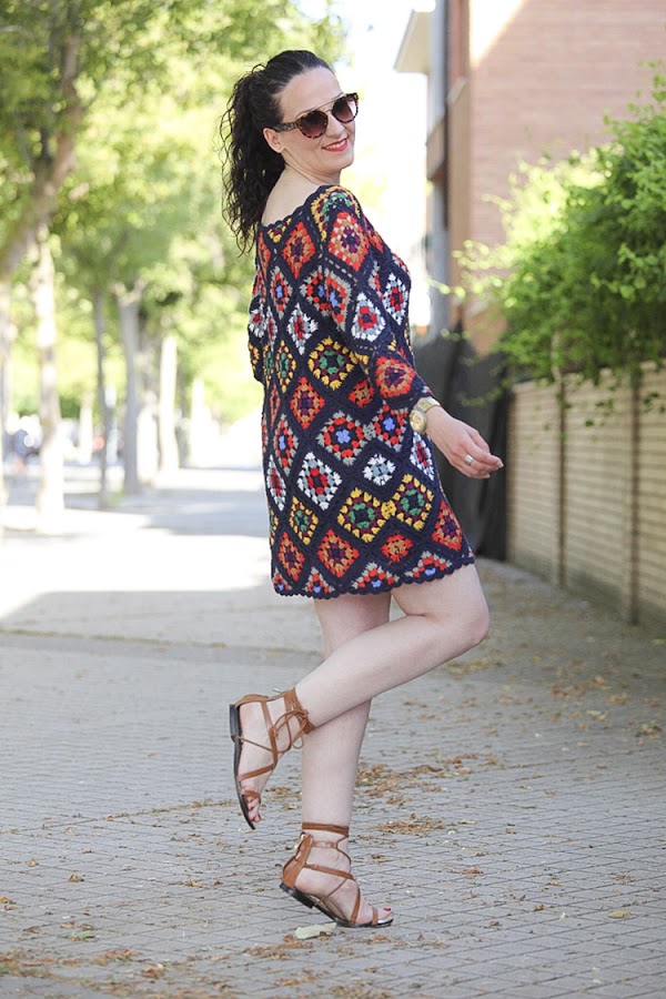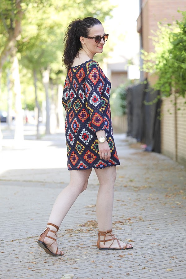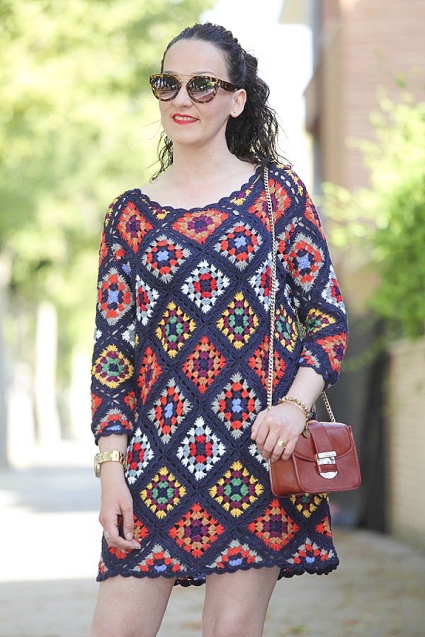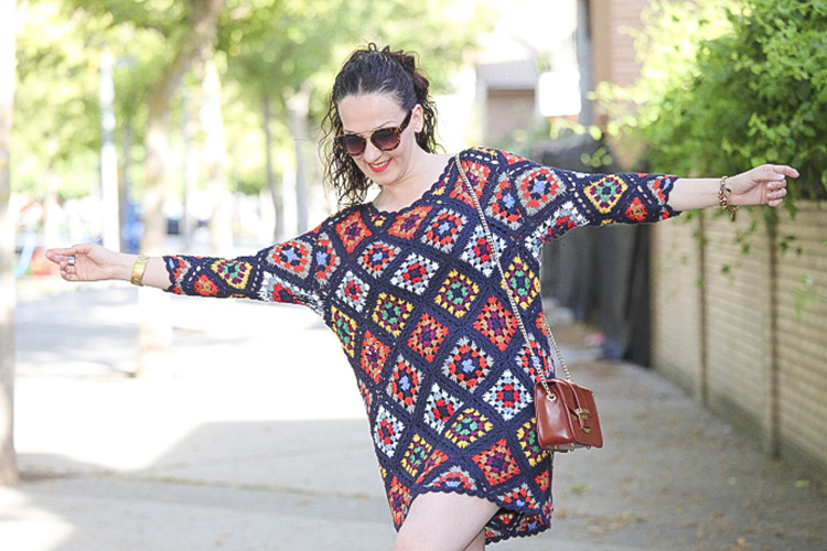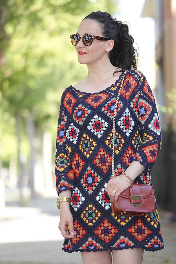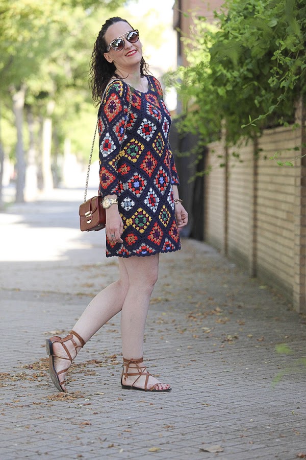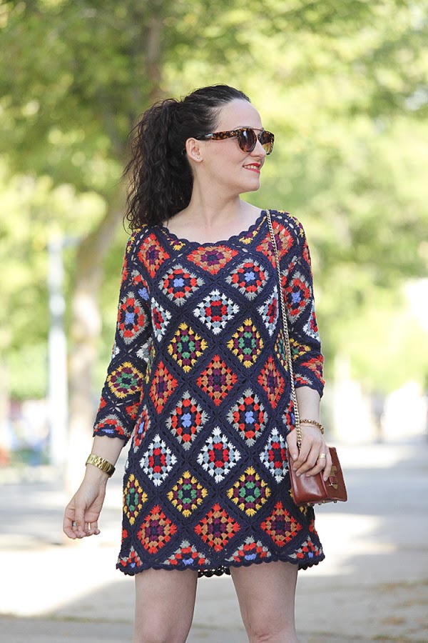 Tiene un colorido muy alegre y su tejido me parece perfecto para las noches de verano, sobre todo donde yo vivo que refresca un poquito. Hoy lo llevo combinado con complementos en cámel con un mini bolso y sandalias atadas al tobillo, aunque con mis sandalias de taconazo negras y detalles en el mismo tono queda impresionante