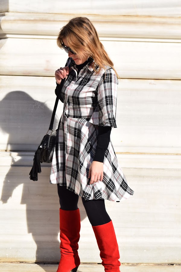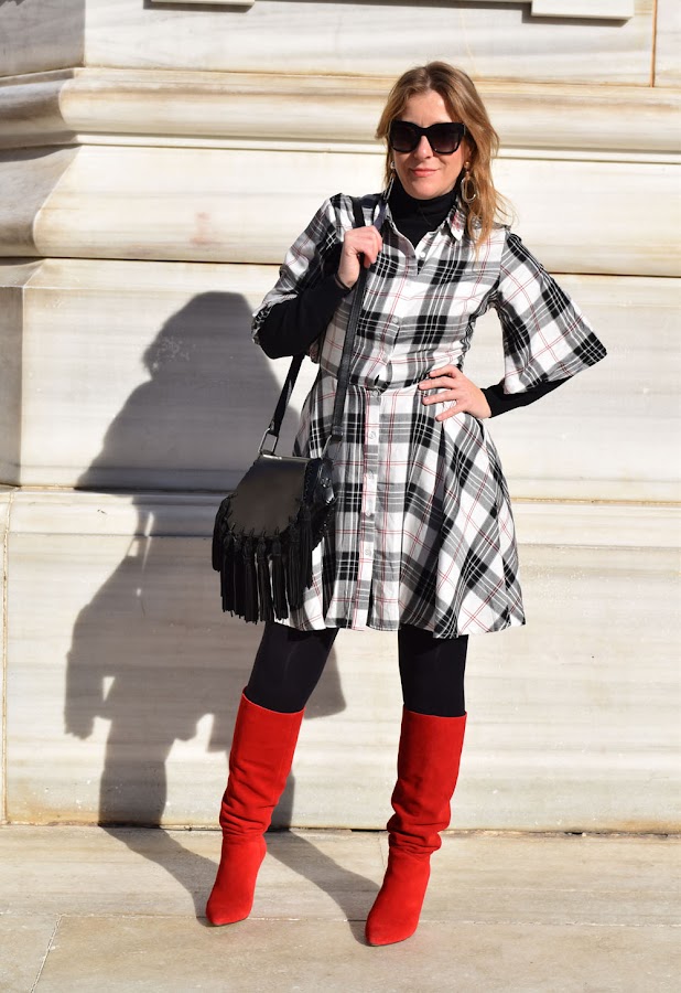 Las botas rojas son un hit esta temporada, ya lo sabemos, y va con casi todo, y en especial con vestidos de todo tipo.