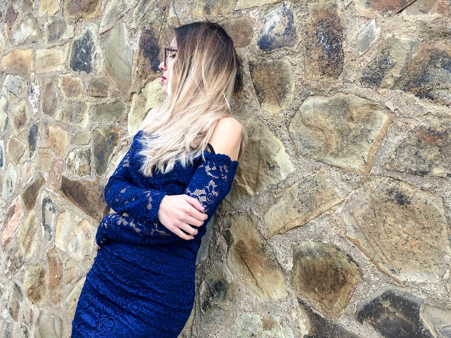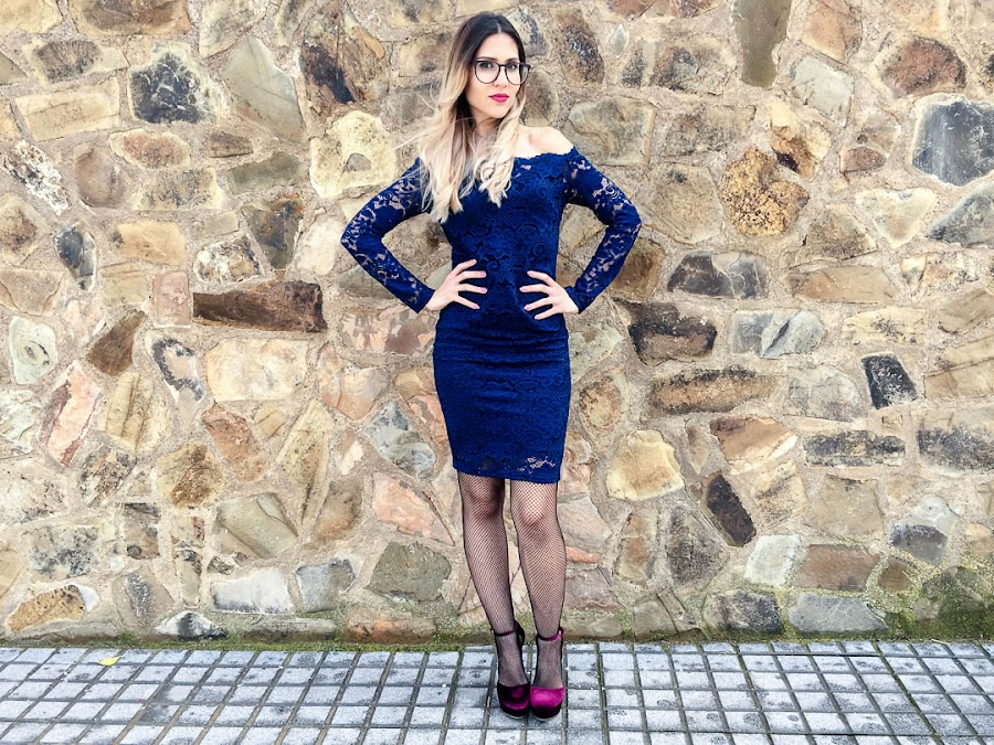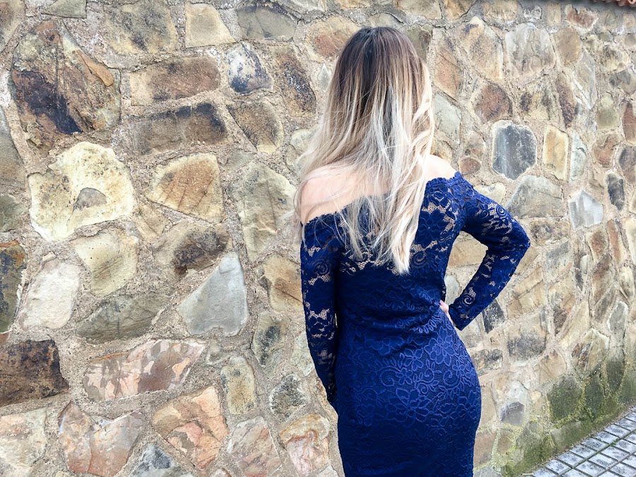 But finally here you have it !! An incredible navy blue dress from LOOKBOOK STORE, with bare shoulders and all lace! You can get it on your website (in the link below) or you can also get it on Amazon (on the same link, you have to buy it via Amazon).