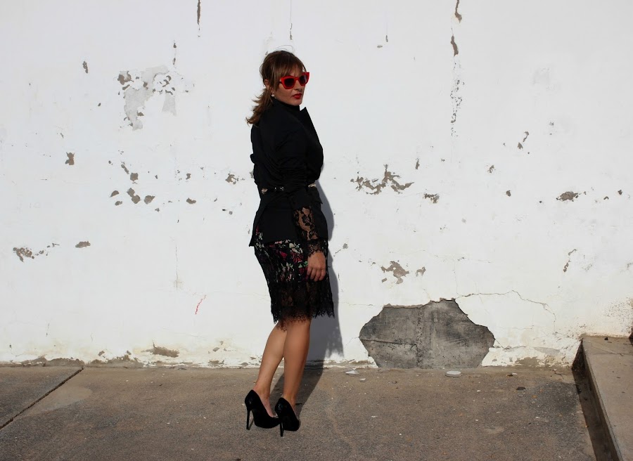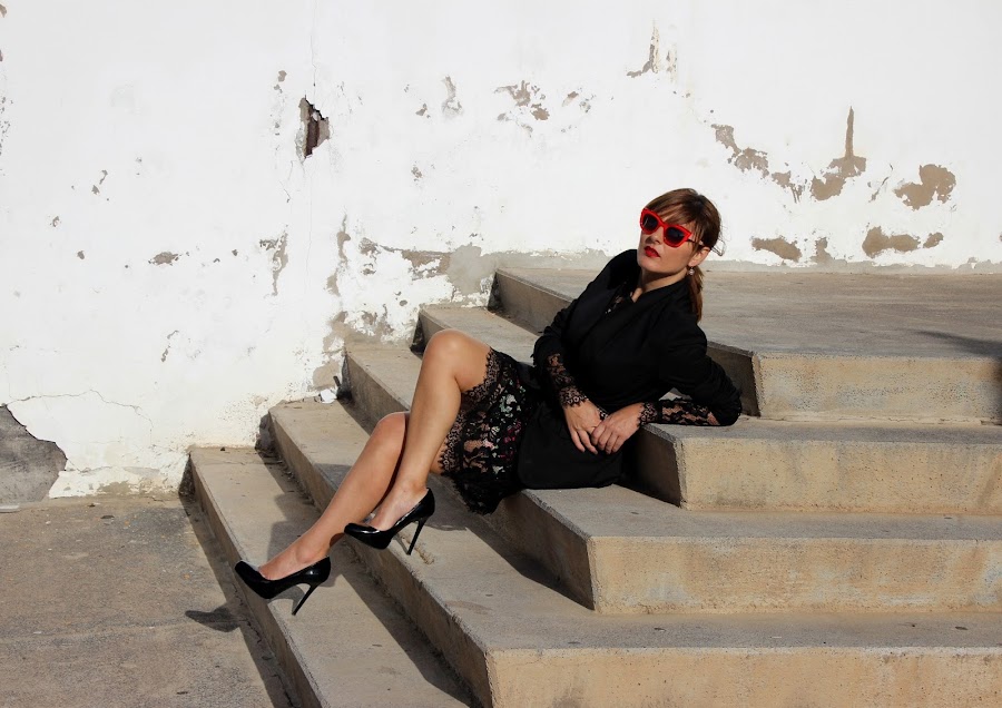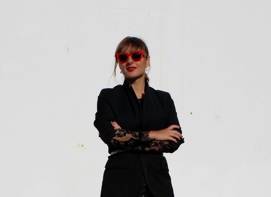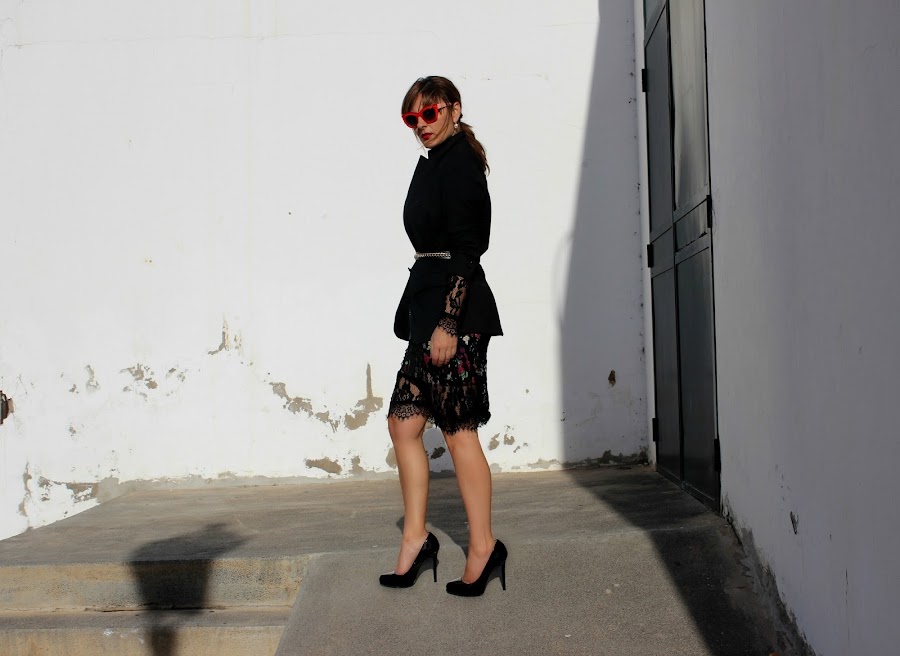 Este vestido ya lo saqué en el blog en una ocasión con un outfit diferente, (si lo quieres ver AQUÍ) debido al escote de la espalda no vi oportuno llevarlo, pero me apetecía que mi marido me lo viera ,así qué, opté por cubrirme con una blazer de cuello esmoquin, ciñendo la cintura con un cinturón.