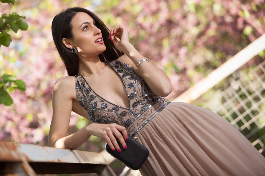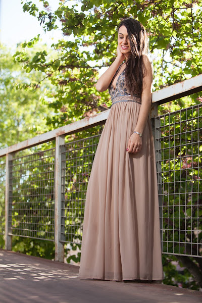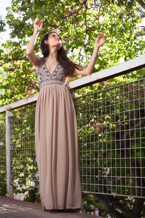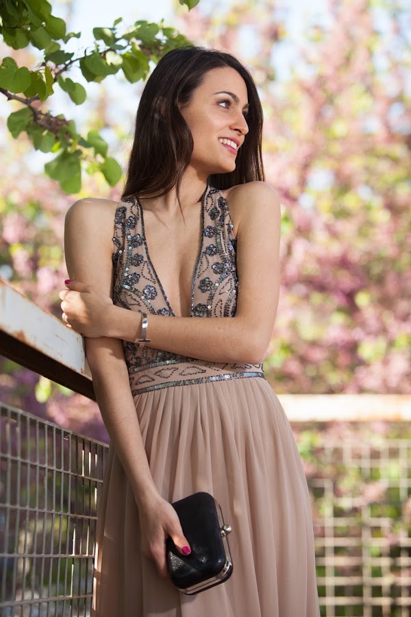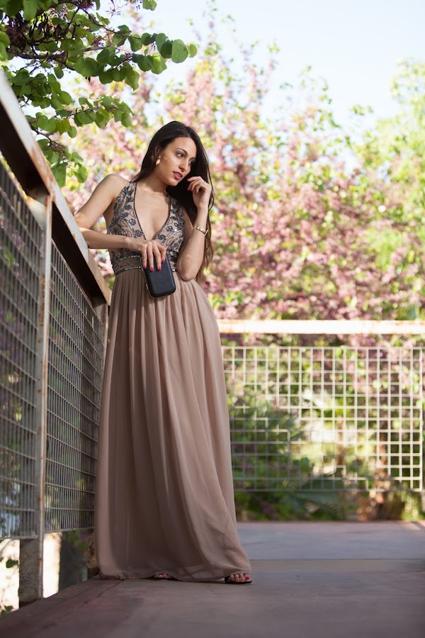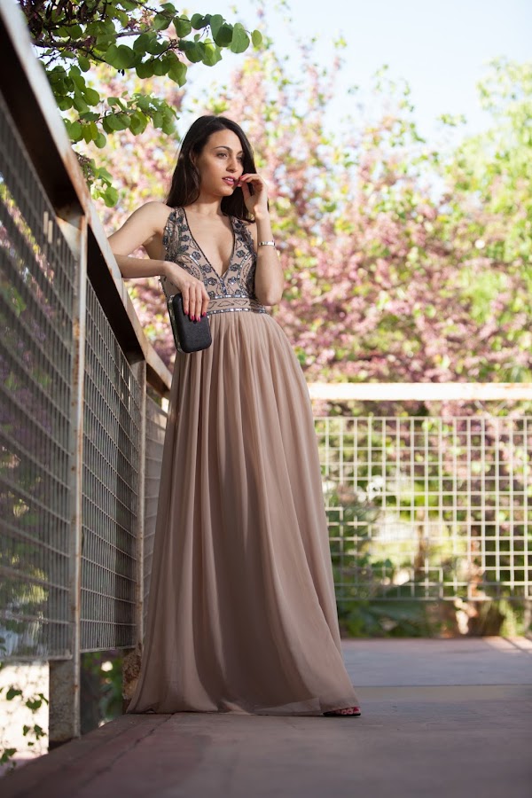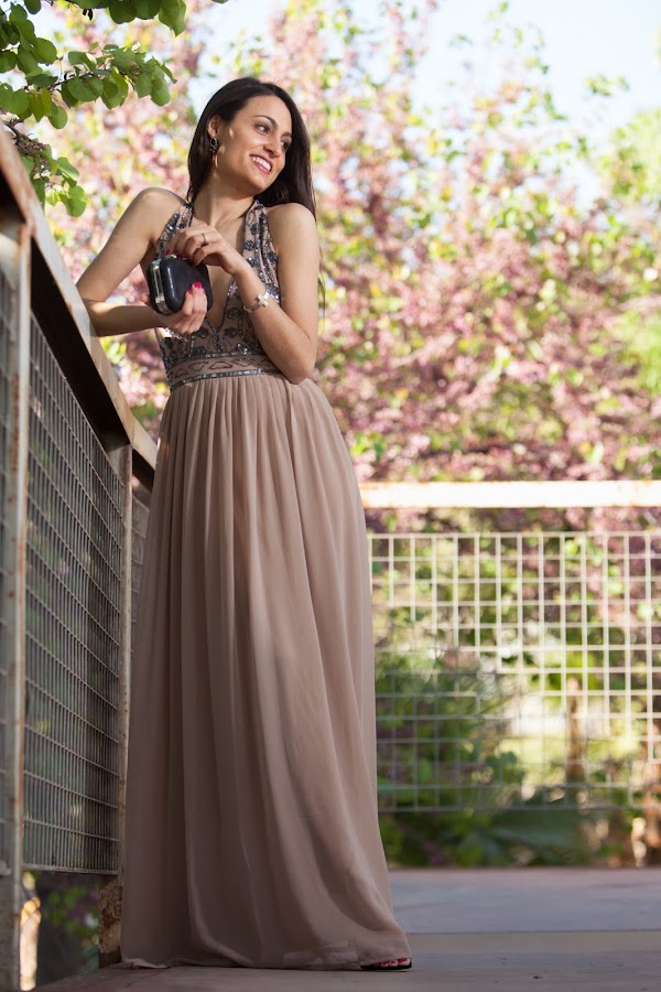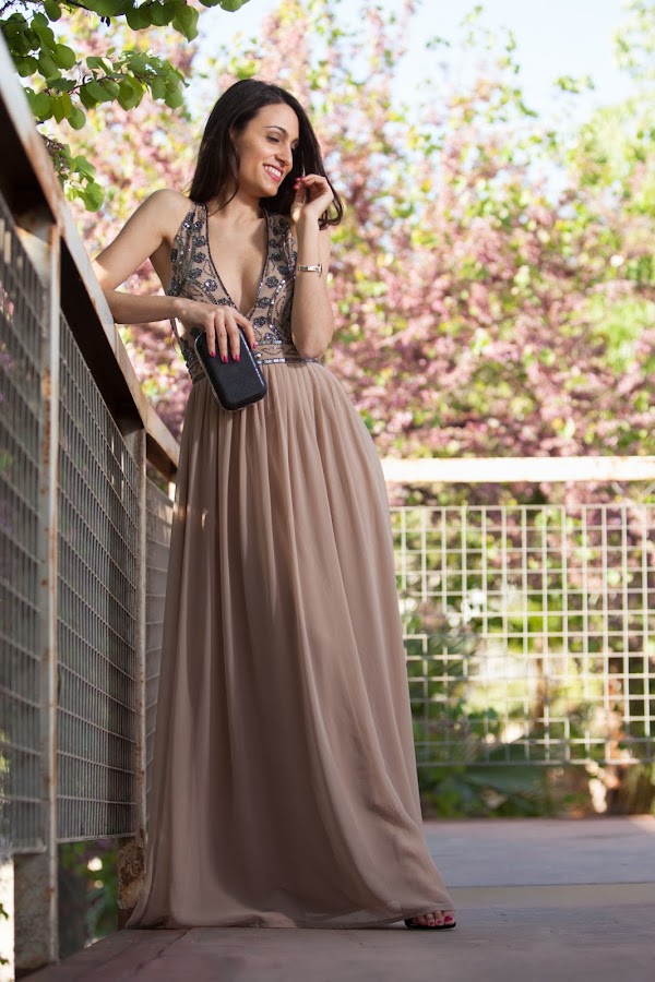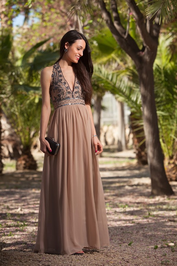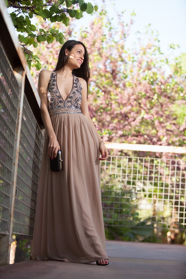 El vestido de hoy es un elegante vestido largo con escotazo de la firma LACE & BEADS.