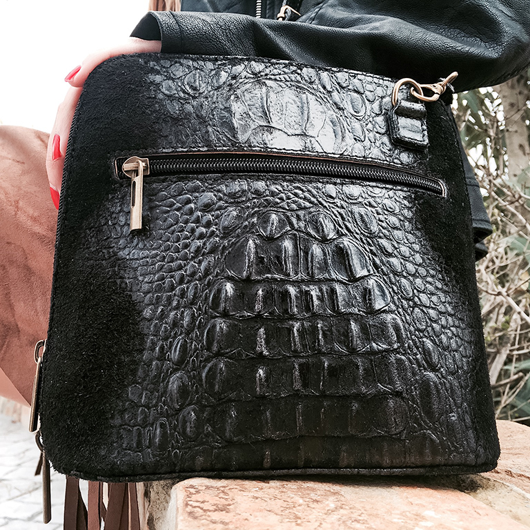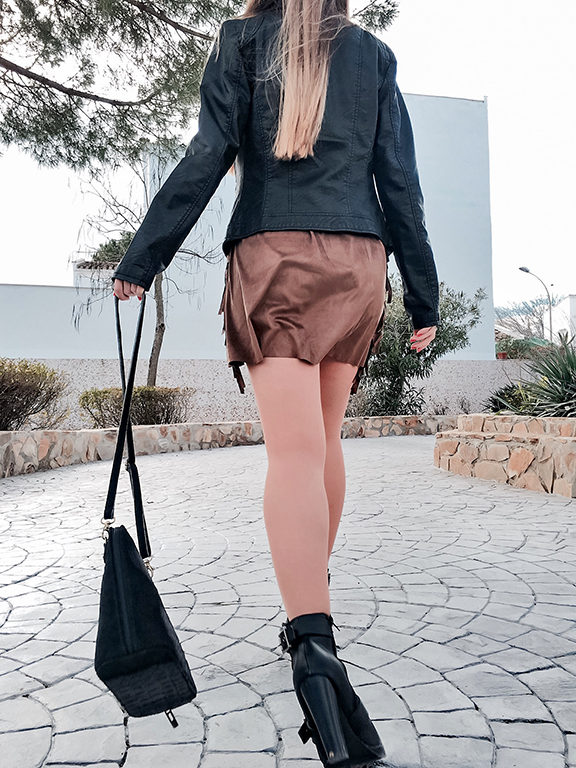 Le he dado un toque rockero con mi biker de cuero, mis botines negros con hebillas y un bolso negro con un toque de animal print que me encanta!