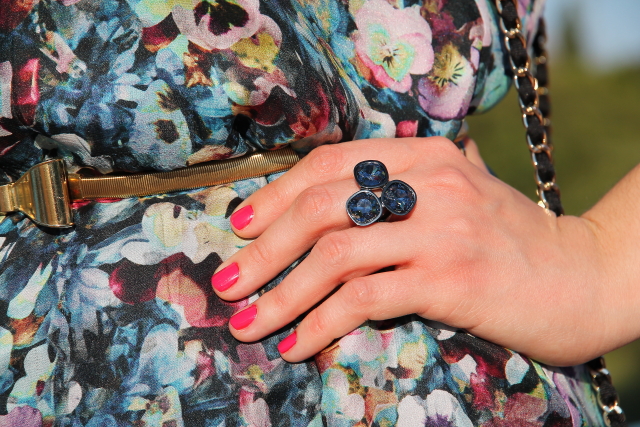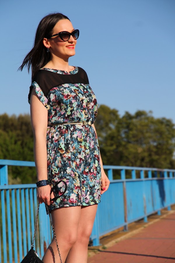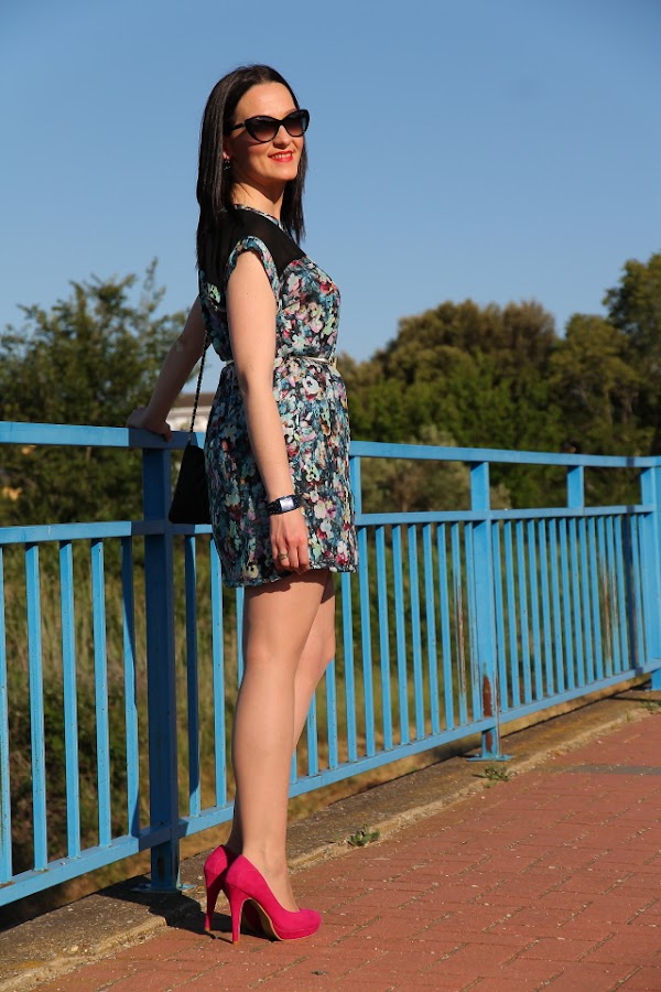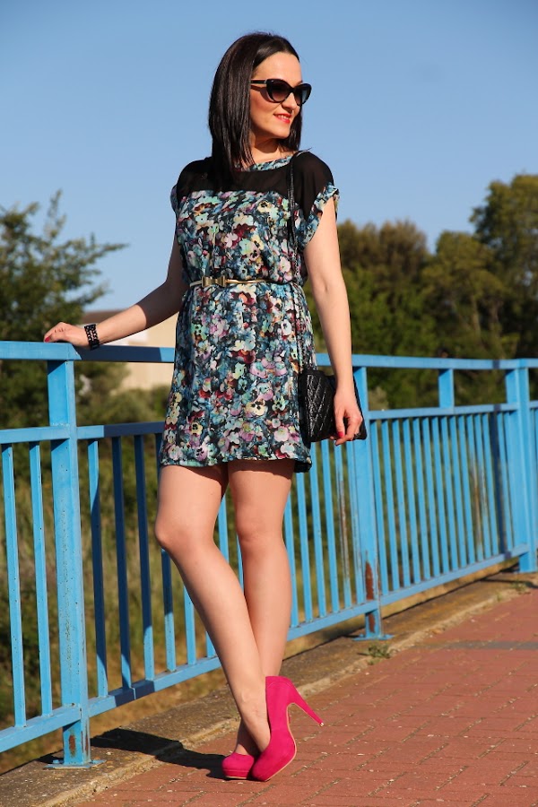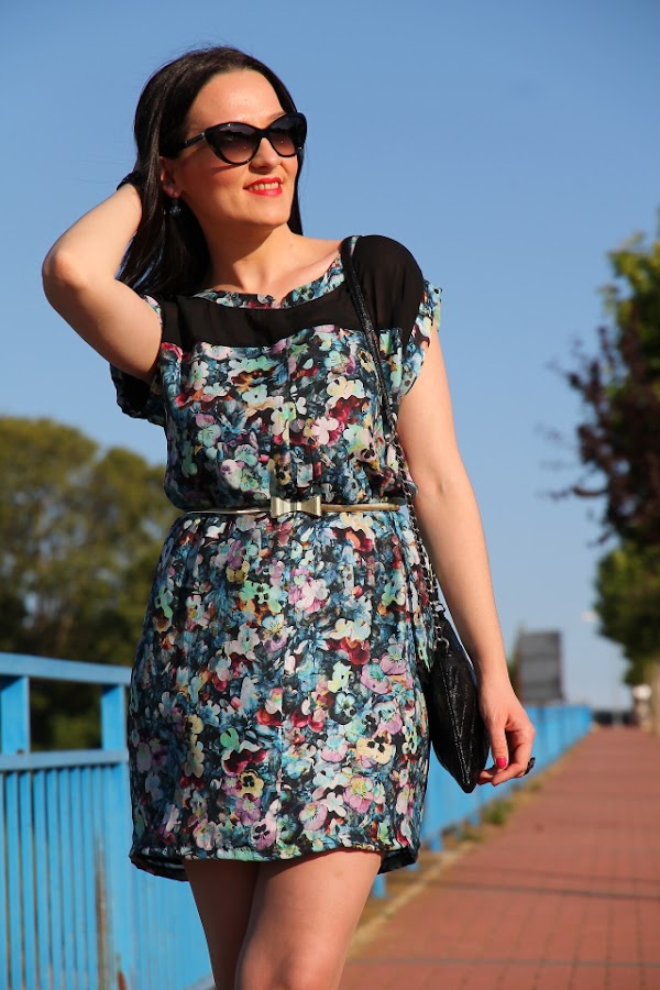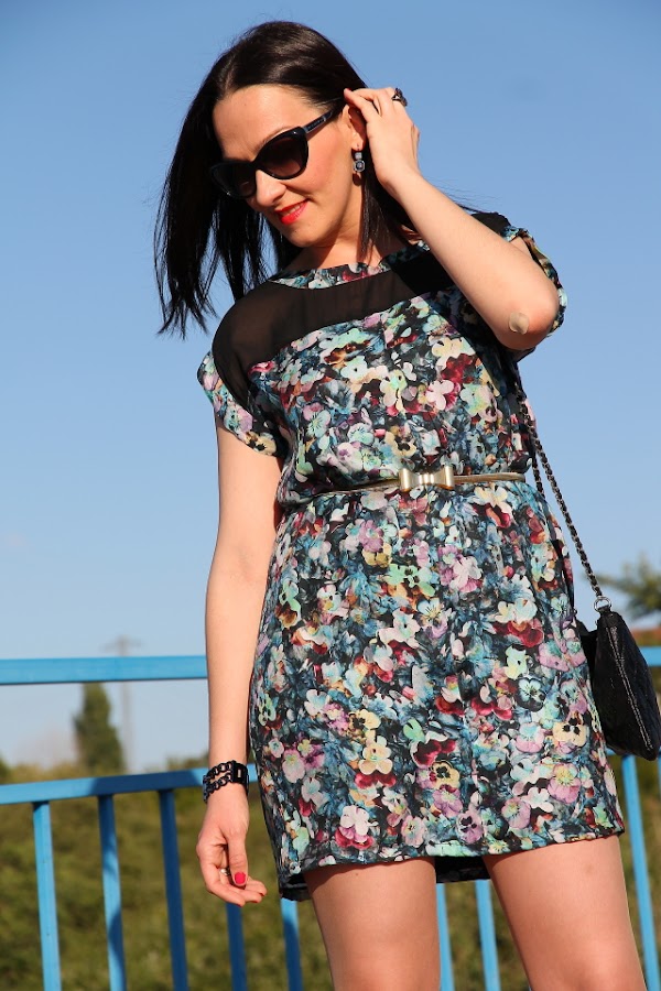 Mi relación con este vestido de flores ha sido amor/odio desde que me lo compré. Me explico, cuando lo compré hace ya bastante tiempo me enamoró y lo guardé para una celebración que tenía. Llegó la fecha señalada y cuando me lo probé había algo que entonces no me gustaba así que finalmente no me lo puse y no lo pude devolver porque ya había pasado más de un mes. Lo he podido llevar una o dos veces a lo sumo y el resto del tiempo ha permanecido guardado en el armario. Sin embargo este verano un día me fijé en él por casualidad y pensé: con lo que me gusta el estampado de flores y la parte de arriba de este vestido ¿por qué no le hago un DIY y lo dejo a mi gusto?. Dicho y hecho, llamé a mi madre y juntas pensamos en los arreglos que le podía hacer y como eran unos cuantos acabamos llevándolo a la modista. La verdad es que después de acortar, entallar, quitar abertura delantera y frunce de la cintura puedo decir que me han hecho un vestido nuevo pero estoy super contenta porque ahora me parece precioso. Además cuando me lo pongo le añado mi cinturón con lazo de metal dorado que hace un mix perfecto con el vestido.