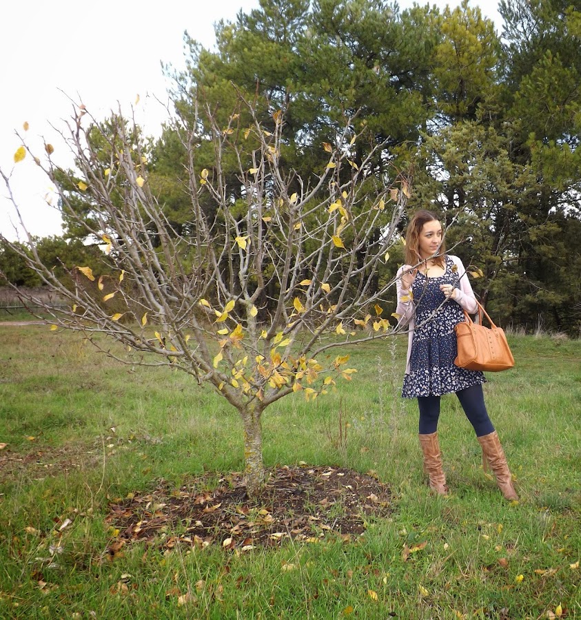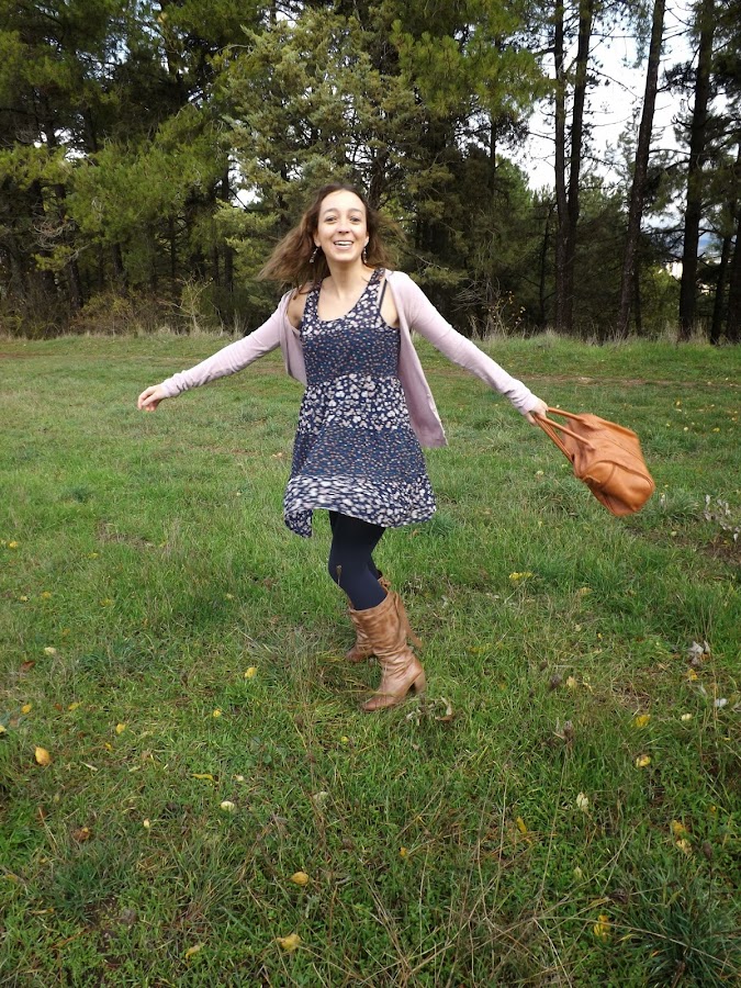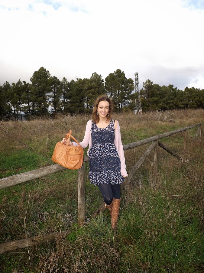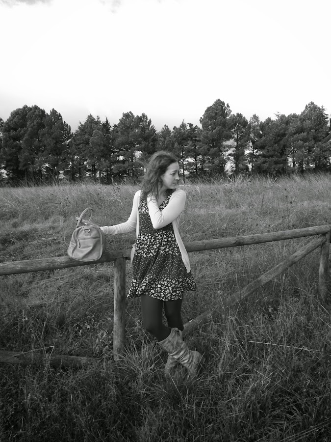 Y seguimos con los vestidos, pero esta vez con un look bastante más relajado formado por un vestido de flores y unas botas camperas. El vestido me gusta mucho como queda tanto con medias tupidas como os enseño ahora, como sin medias y unos botines de flecos.
